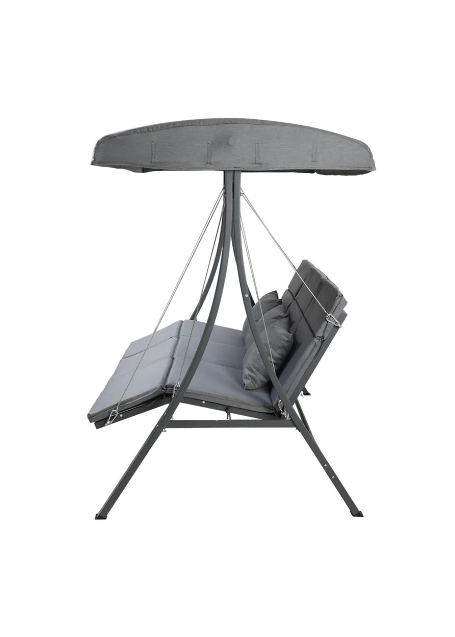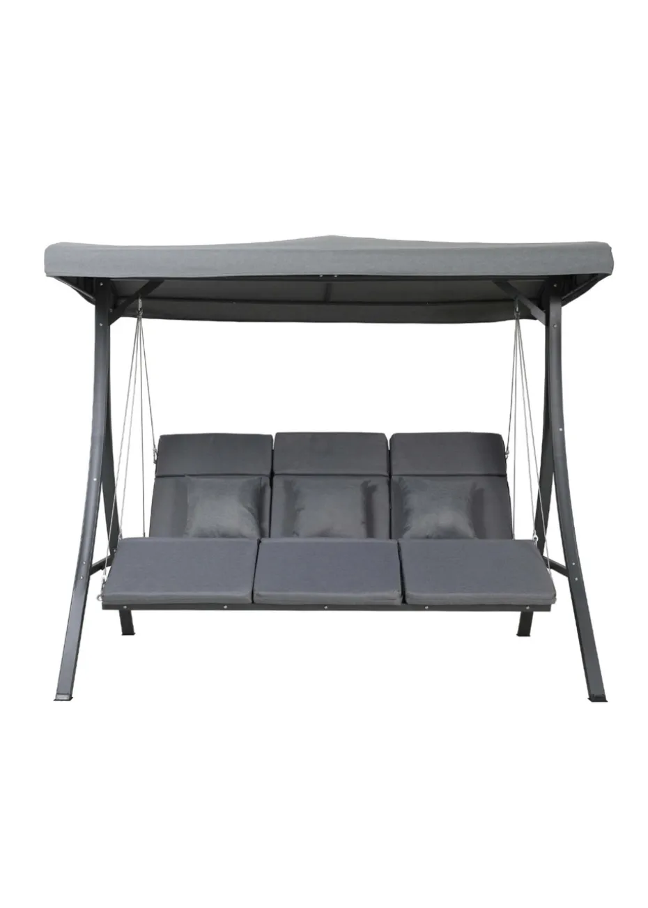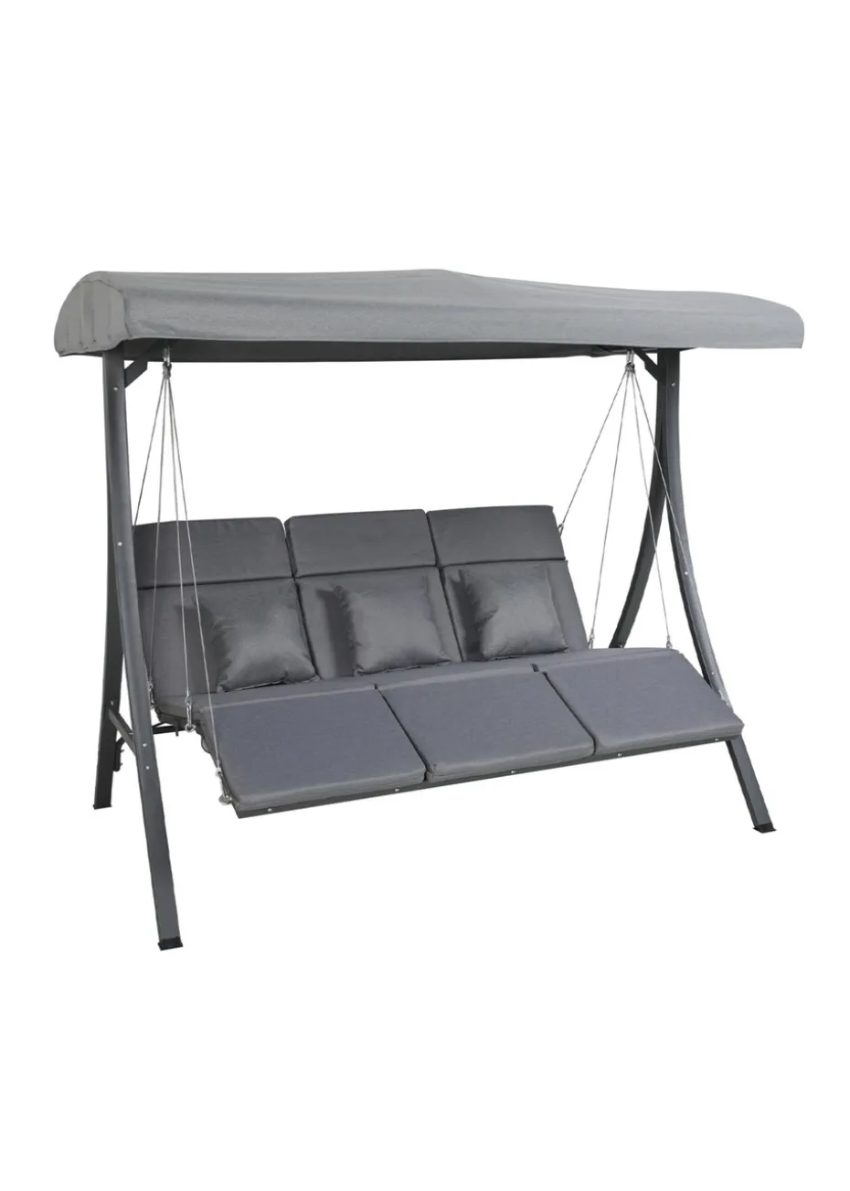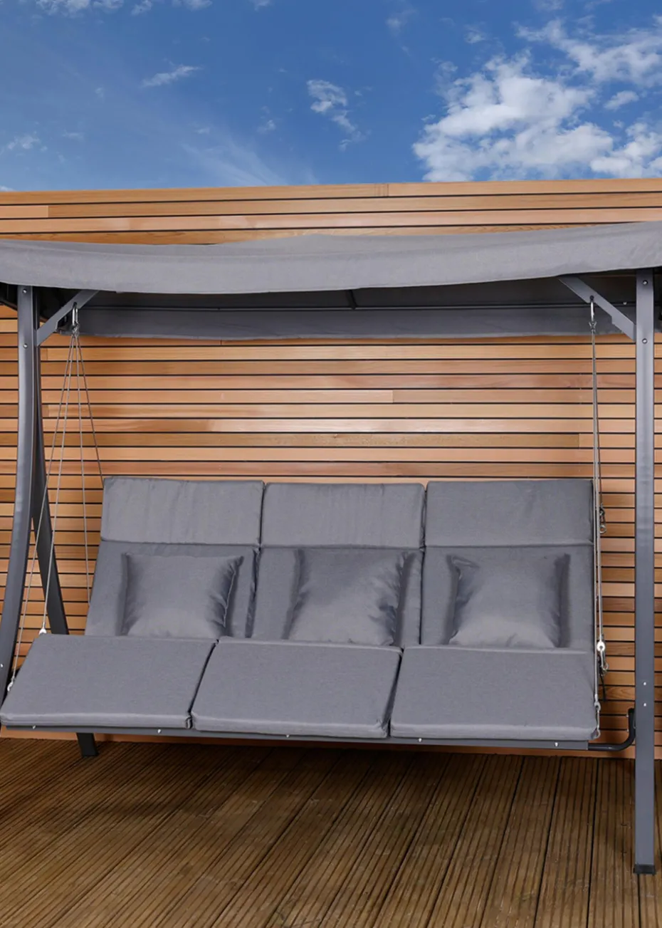 The Charles Bentley 3-seater lounger swing chair boasts a stylish curved design with relaxed lounger-style seats, transforming any area of your garden into a serene and relaxing retreat. With a three-person capacity, it is ideal for spending quality time with family and friends, or to stretch out and relax in the summer breeze.