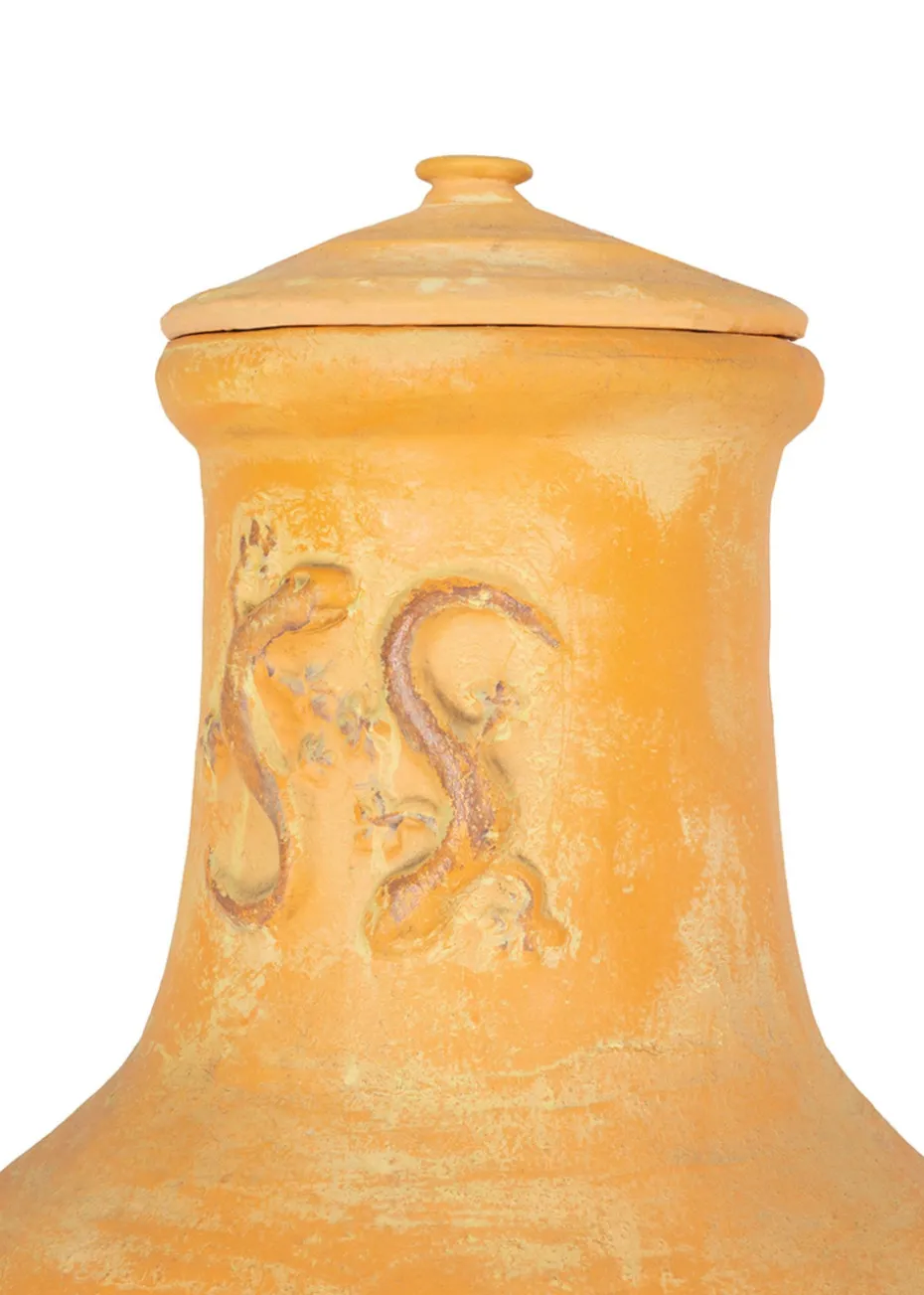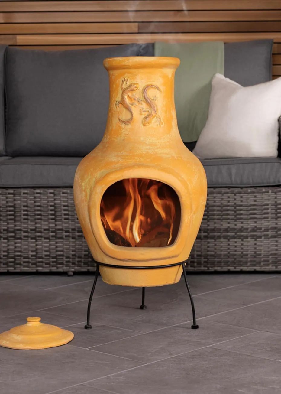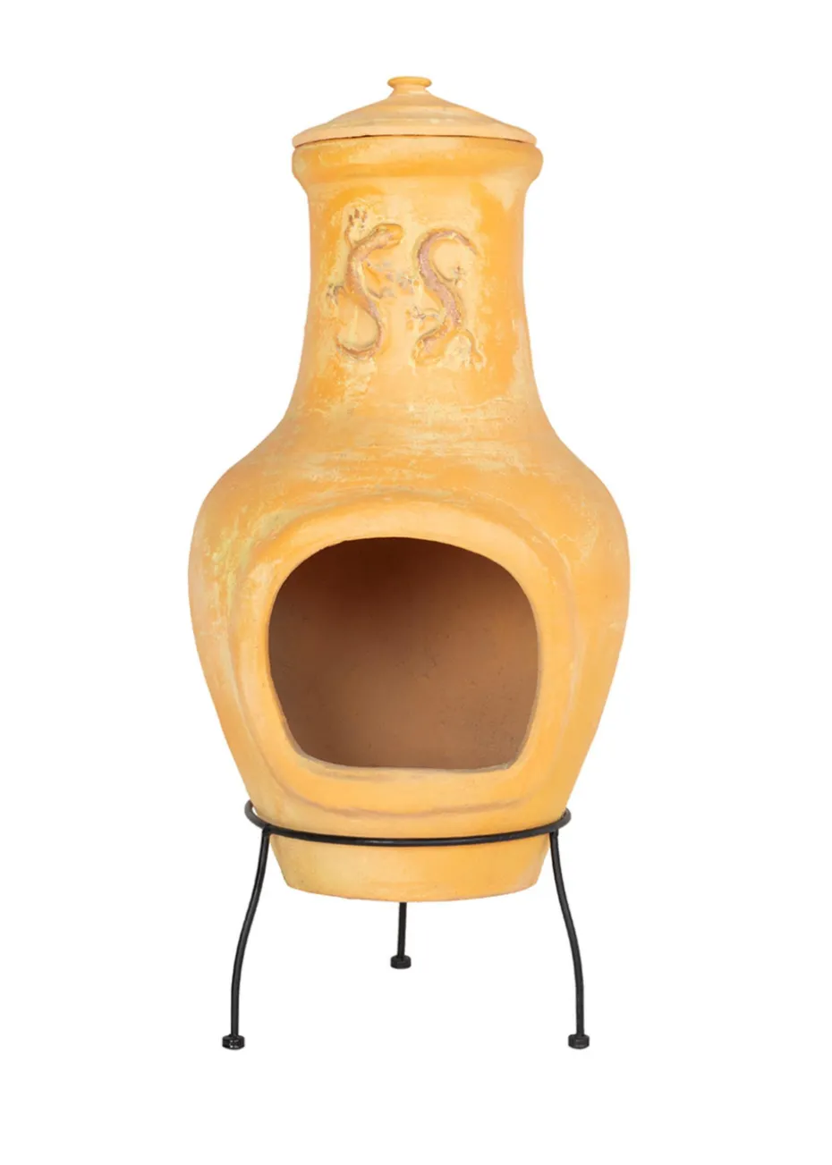Since 1860, Charles Bentley have redefined the significance of thorough craftsmanship and attention to detail in an industry that moves rapidly. Speaking of detail, there is no better way to incorporate some added charm into your garden than one of our characterful chimeneas. We ensure that we select only the most charming products so that you can rest easy knowing your chimenea will always compliment your outdoor oasis. This large clay chimenea has a rustic terracotta finish and a lizard motive, it provides a great source of outdoor heat when it’s cooler in the evenings. This chimenea is supplied with a stand and useful lid in case it rains and helps to create a relaxing cosy atmosphere when entertaining. Features: Lizard design Burns wood Lid for weather protection Materials: Natural clay Steel Dimensions: Product height (no stand): 70cm Product width (no stand): 40cm Product height (with stand): 80cm Weights: 18kg