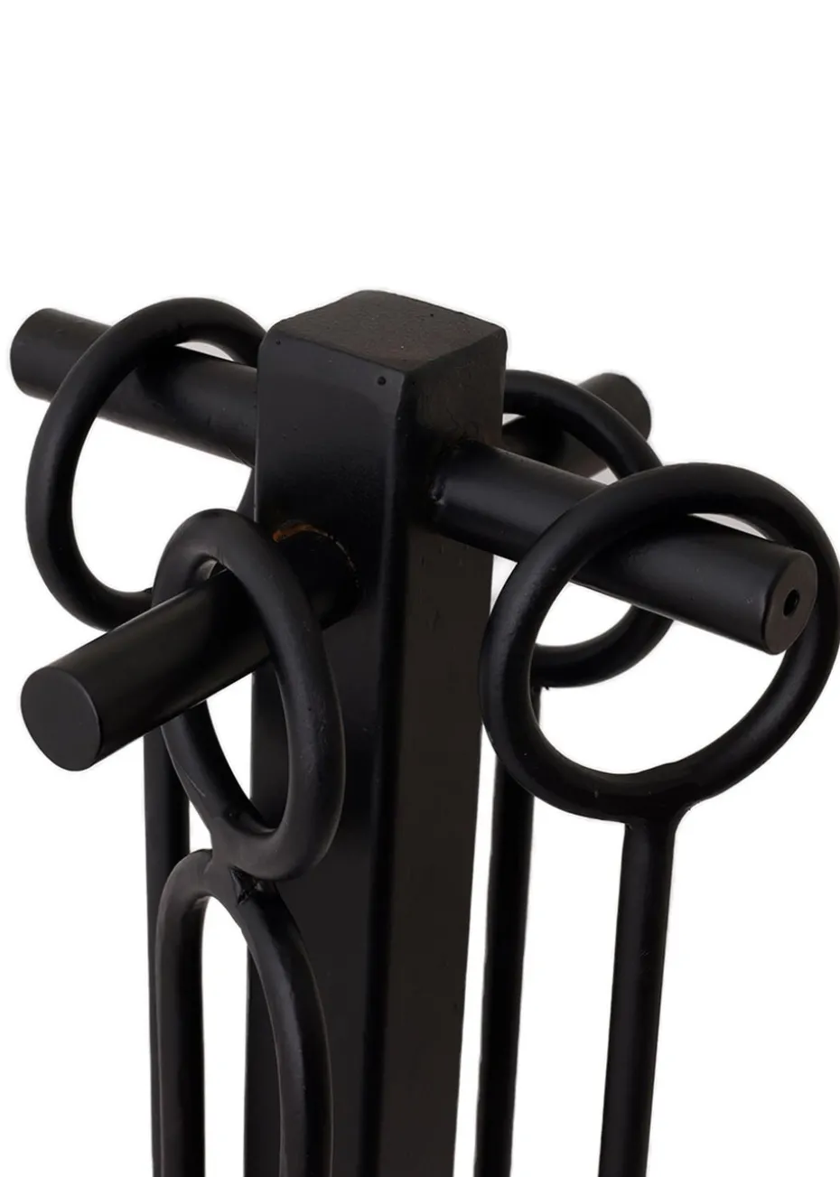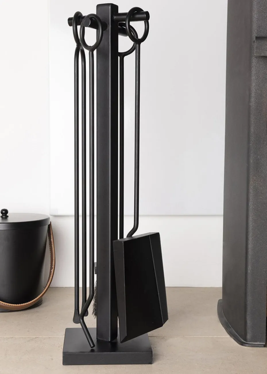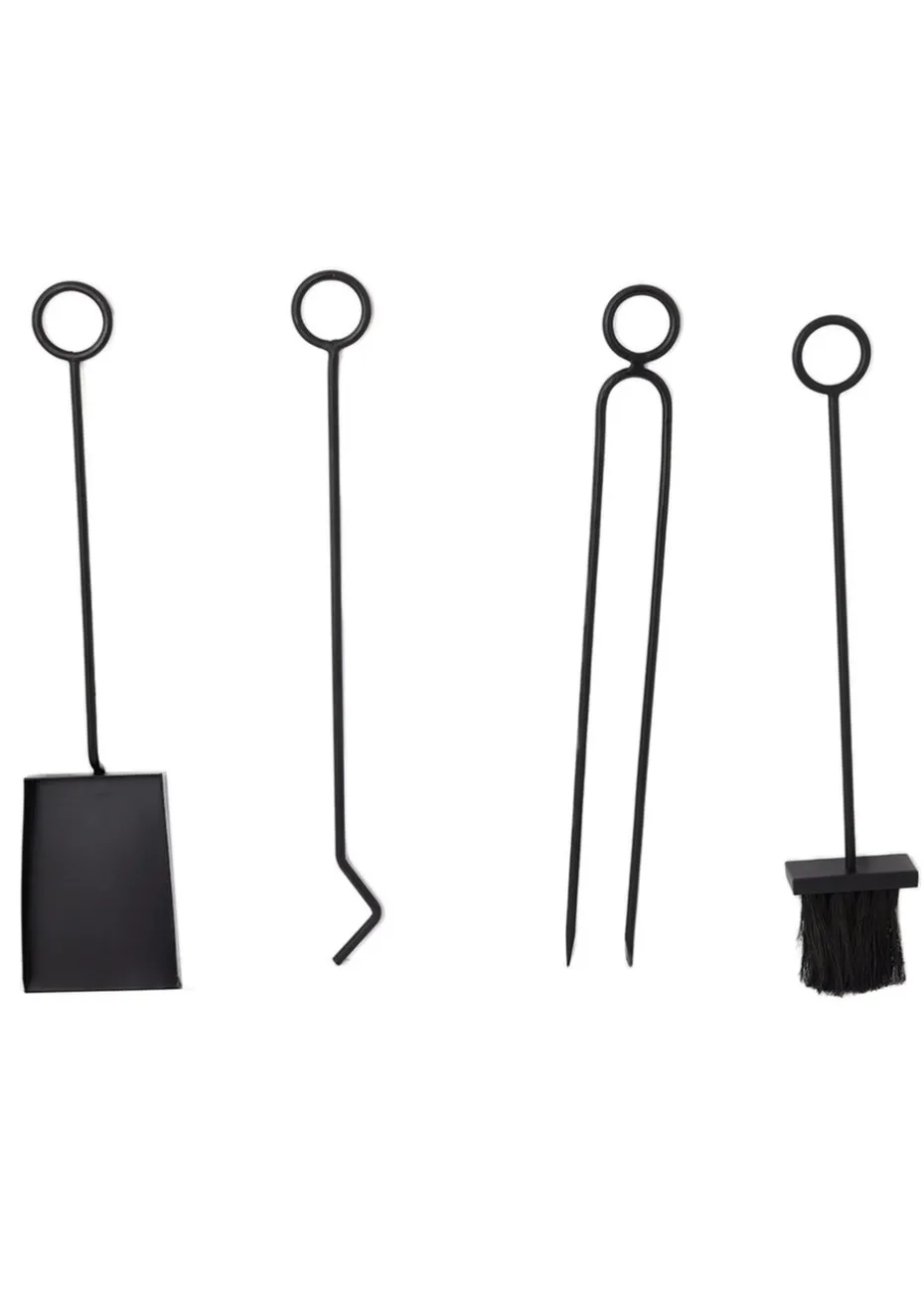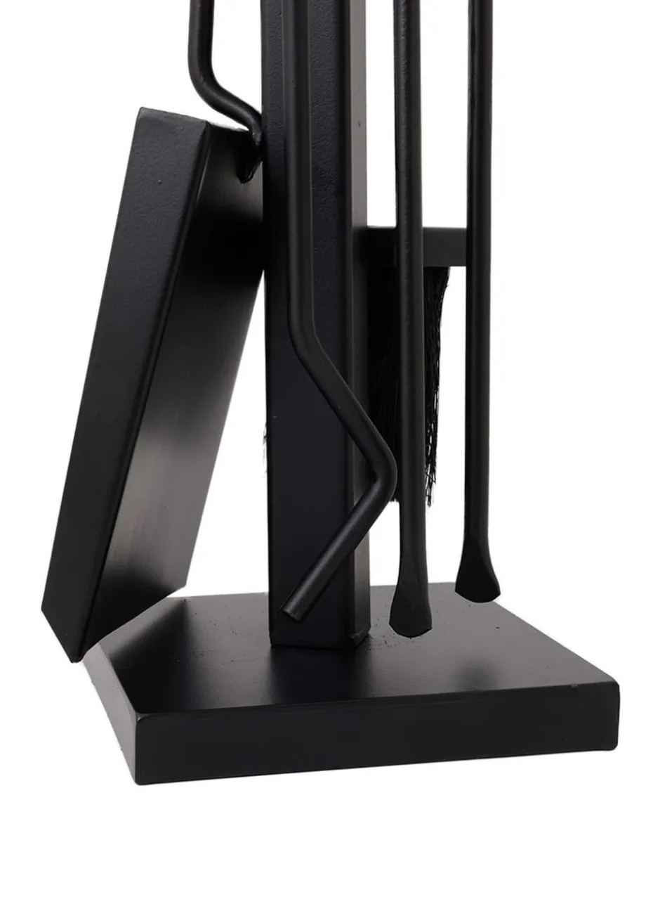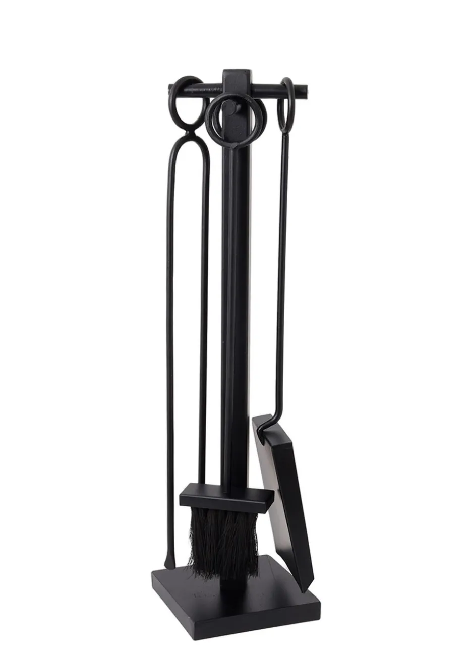 The Palm Fireside Companion Set is a perfect blend of functionality and traditional design, ideal for keeping your living room warm and cosy during those chilly autumn and winter nights. This comprehensive set includes a pair of tongs, a poker, a coal shovel, and a brush made from durable coco fibers, each featuring elegantly hooped handles for comfortable use. The brush’s coco fibers are particularly effective for maintaining the cleanliness of your fireplace. The set is presented on a square base tool stand, finished in a tasteful black matte that complements any decor while adding a touch of sophistication. With its classic design and practical tools, the Palm Fireside Companion Set not only meets all your fireside needs but also enhances the aesthetic of your living space. Please Note: Warning: This product will get hot if placed in front or close to an open fire. Please allow to cool, or use protective gloves before handling. Never leave children or pets unsupervised in a room with a lit fire or hot material. A blazing fire should never be left unattended. Care Instructions: This product is best maintained by wiping occasionally with a soft cloth. Do not use any abrasive cleaners. For indoor use only. Features: Four piece fireside companion set Traditional design Individual holder for each tool Hooped handles Solid square base Powder coated finish Includes: 1x coal shovel 1x tongs 1x brush 1x poker 1x tool stand Materials: Iron Natural coco fiber Dimensions: Overall height: 61cm Overall length: 15cm Overall width: 15cm Fire poker: 1x6x55cm Coal shovel: 5x12x55cm Brush: 5x10x55cm Tongs: 1x5x55cm Weights: Total: 3.2kg Tool stand: 1.8kg Fire poker: 200g Coal shovel: 400g Brush: 300g Tongs: 450g Colours: Black