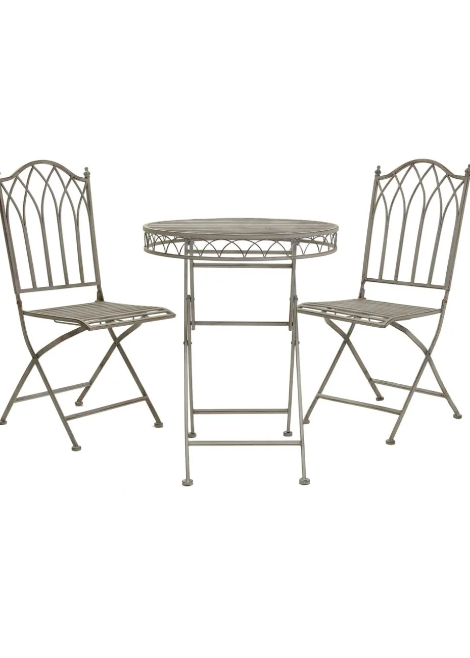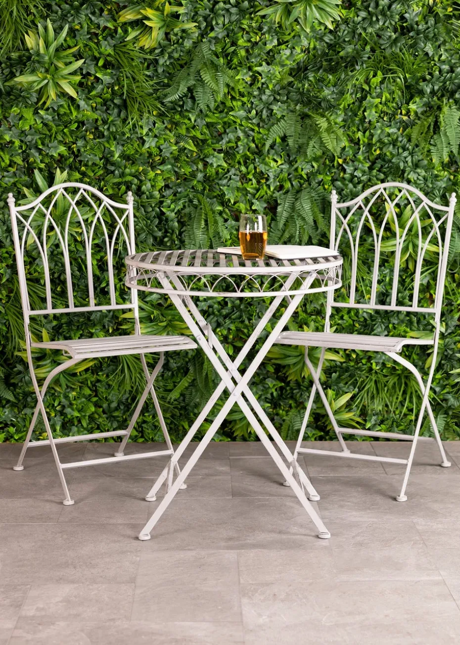 This wrought iron bistro set is available in either white or grey, able to fit in with your garden seamlessly and provide the perfect place to eat or drink. The 3 piece set is strong whilst light, meaning transportation is easy if you desire to move it once it’s been placed. Table and chairs both fold for easy storage too. We advise that this product is covered and stored appropriately during the winter months.