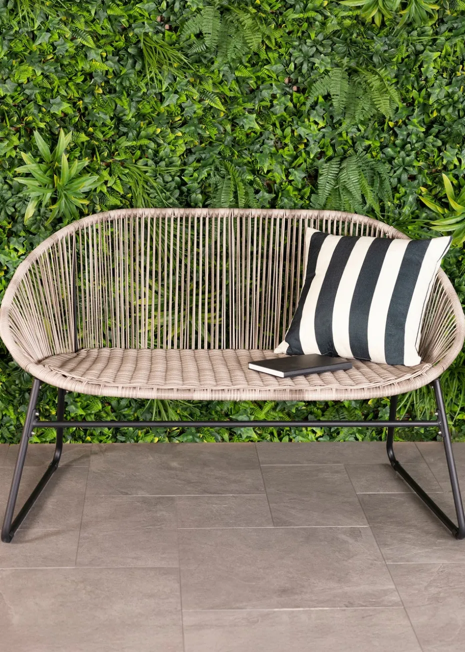 This beautifully stylish Charles Bentley Zanzibar 2 Seater Bench is a key piece for any modern garden, patio or conservatory. Ideal for indoor or outdoor use, this quality bench is made with a sturdy powder-coated steel structure and a soft woven rattan design to make for a very comfortable seat but is also lightweight and easy to move. Also available in Natural. Features: Contemporary design Robust steel frame Provides style and comfort Suitable for indoor and outdoor use Includes: 1x 2 seater bench Materials: PE Rattan Powder coated steel Dimensions: H77 x D67cm x W118cm Weights: 8.5kg Colours: Grey wicker Black frame Additional Info.: Floor to seat height: 41cm Maximum user weight: 360kgs
