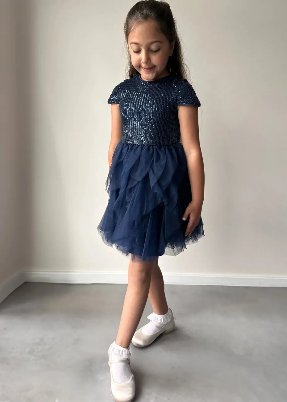 Chi Chi London Navy Younger Girls Sequin Tulle Midi Dress (3-8 Years)