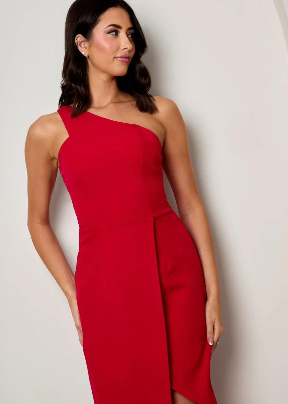 Chi Chi London Red One Shoulder Split Detail Midi Dress