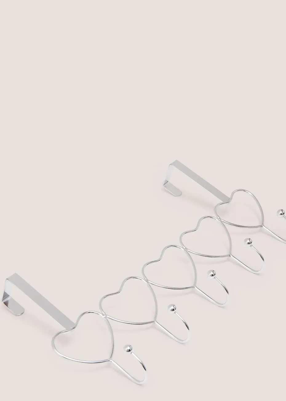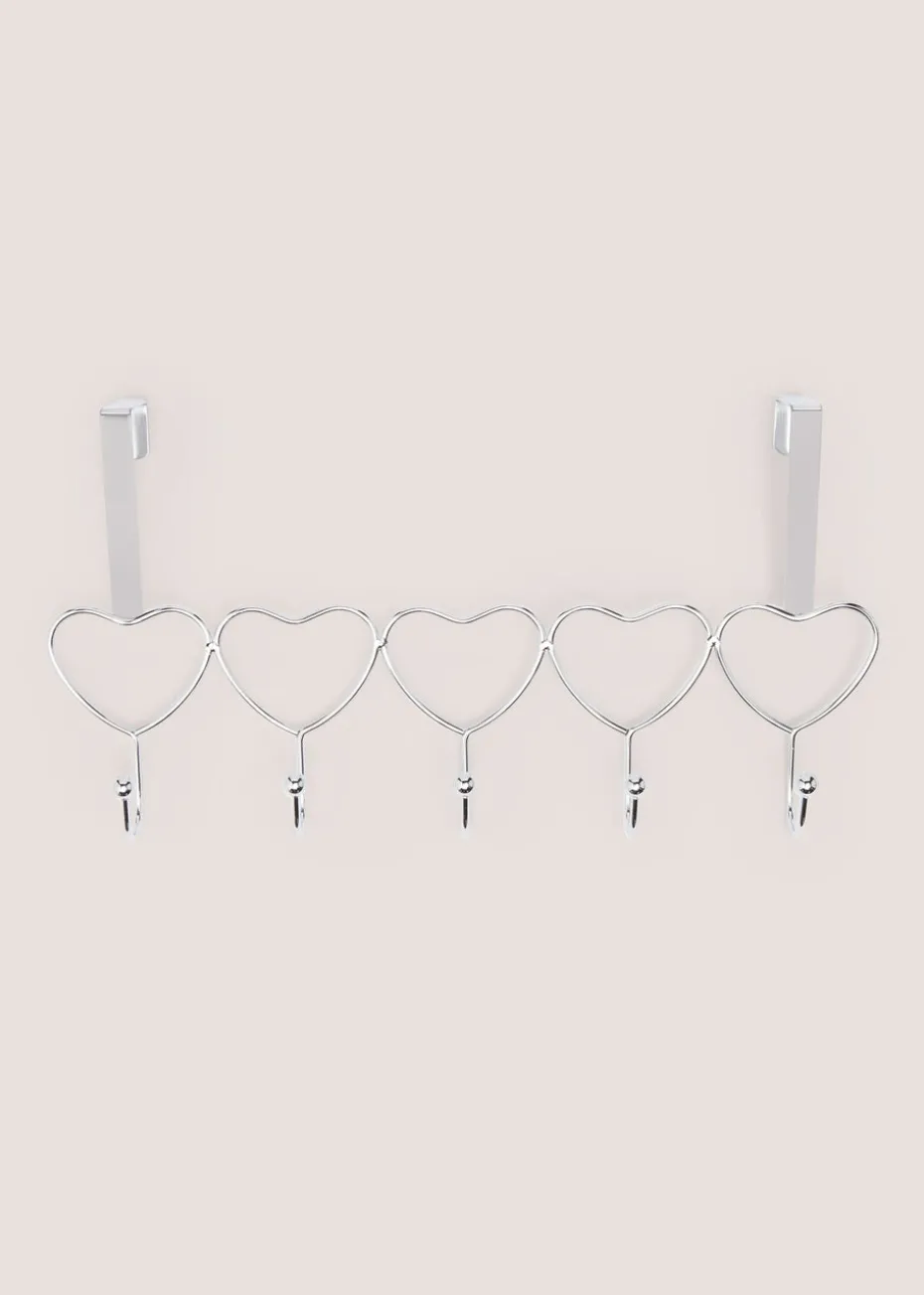 This set of five heart-shaped hooks, interconnected for convenience, is designed to hang on your door, offering a stylish and functional way to organize your belongings. Crafted with a sleek chrome finish, these heart outline hooks add a touch of elegance while providing a handy solution for hanging coats, hats, bags, or other items.