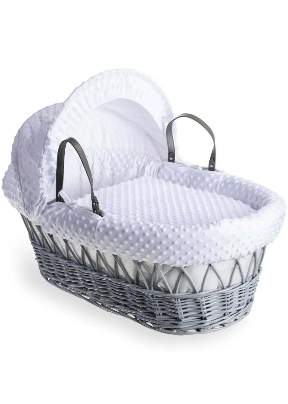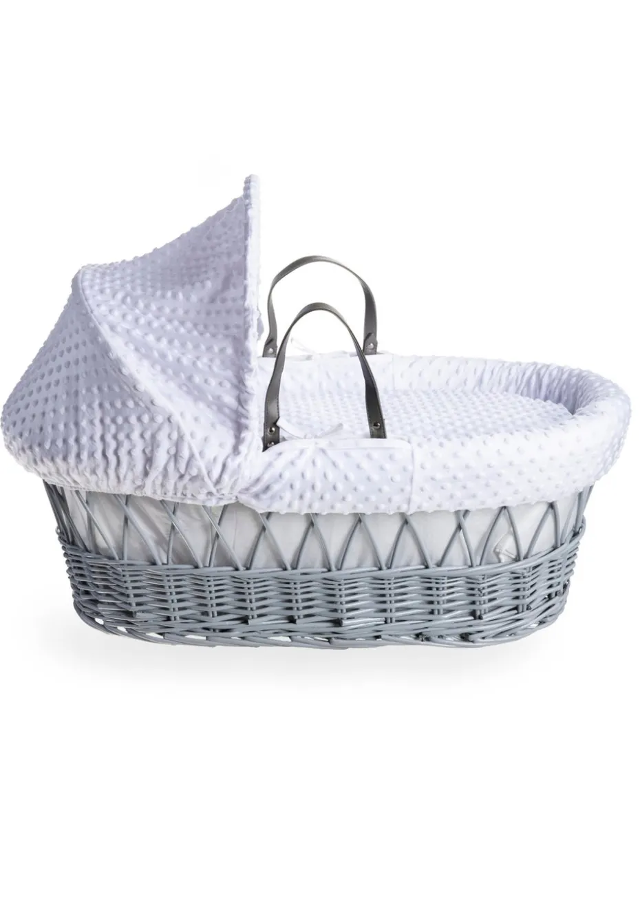 Clair de Lune White Dimple – Grey Wicker Moses Basket