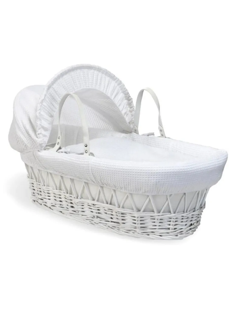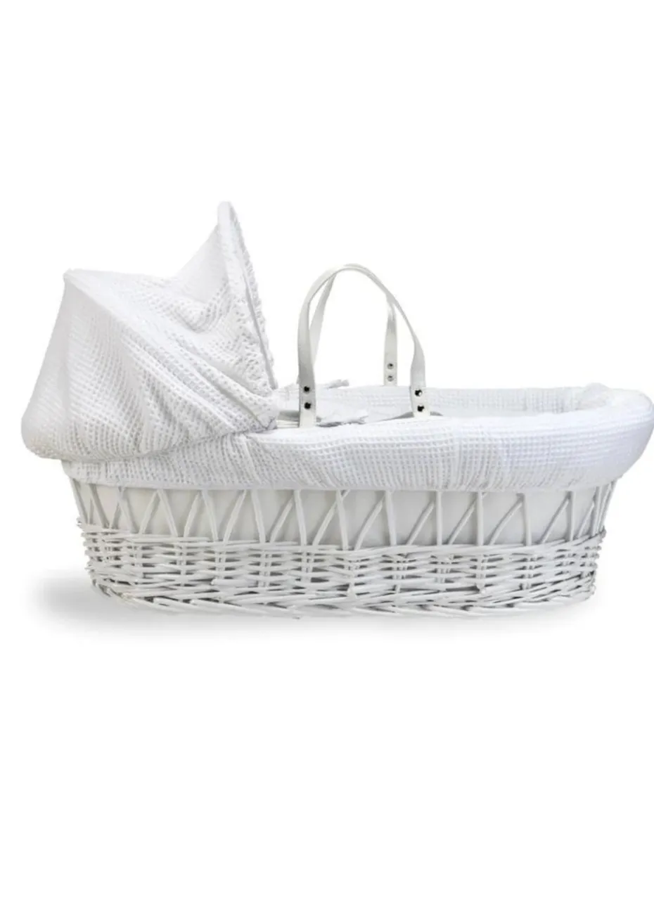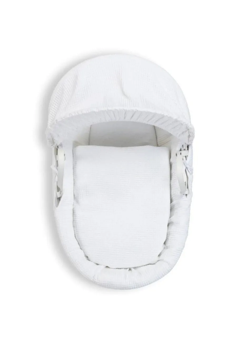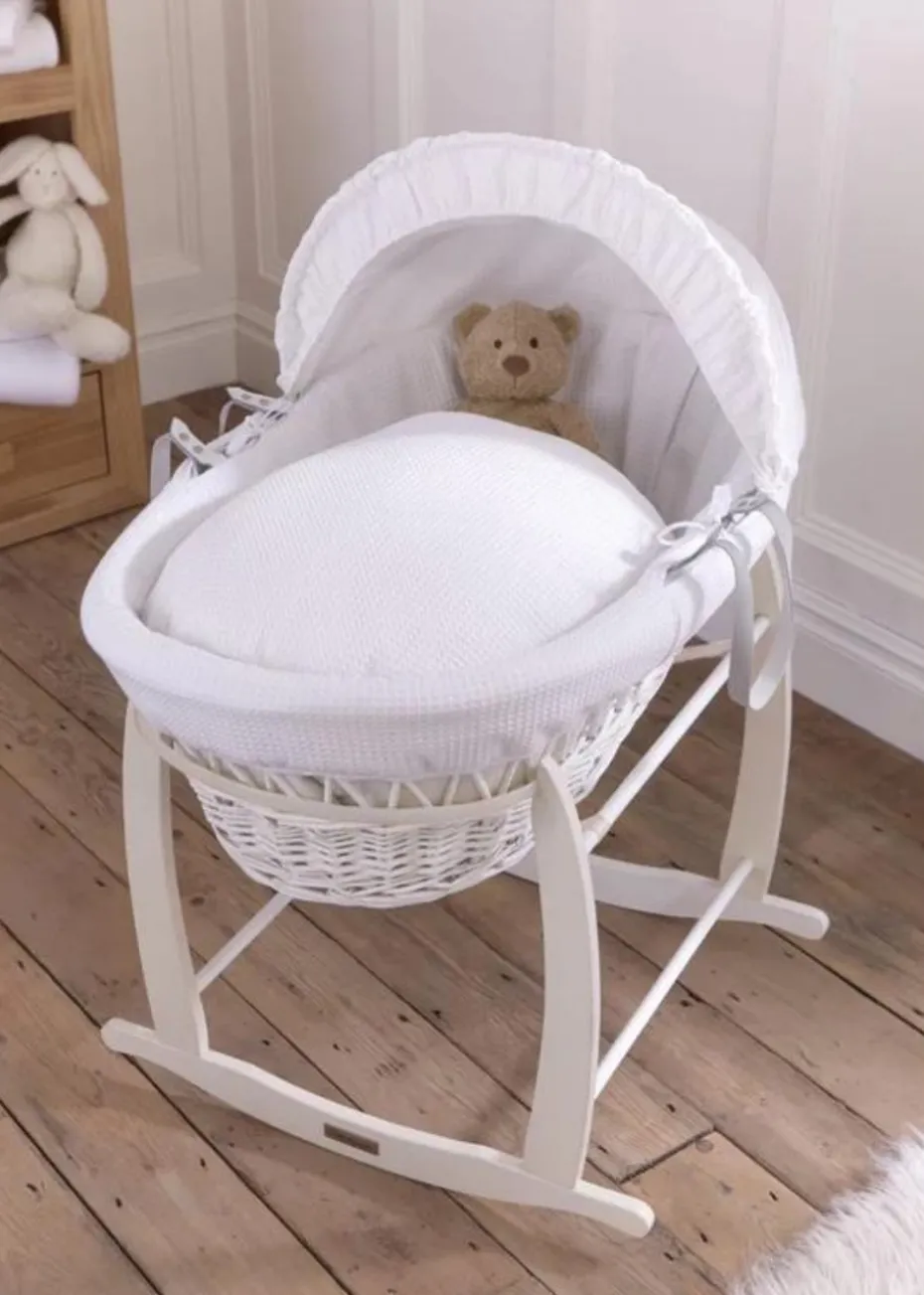 Clair de Lune White Waffle Wicker Moses Basket with Deluxe Rocking Stand