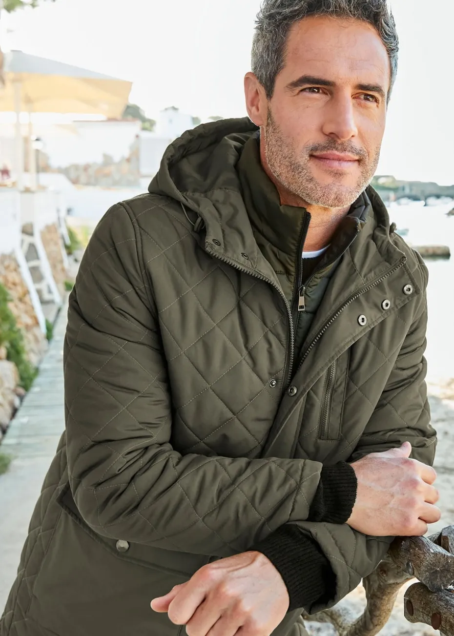 Cotton Traders Forest Green Showerproof Quilted Mock Coat