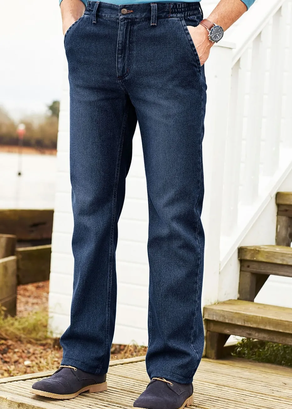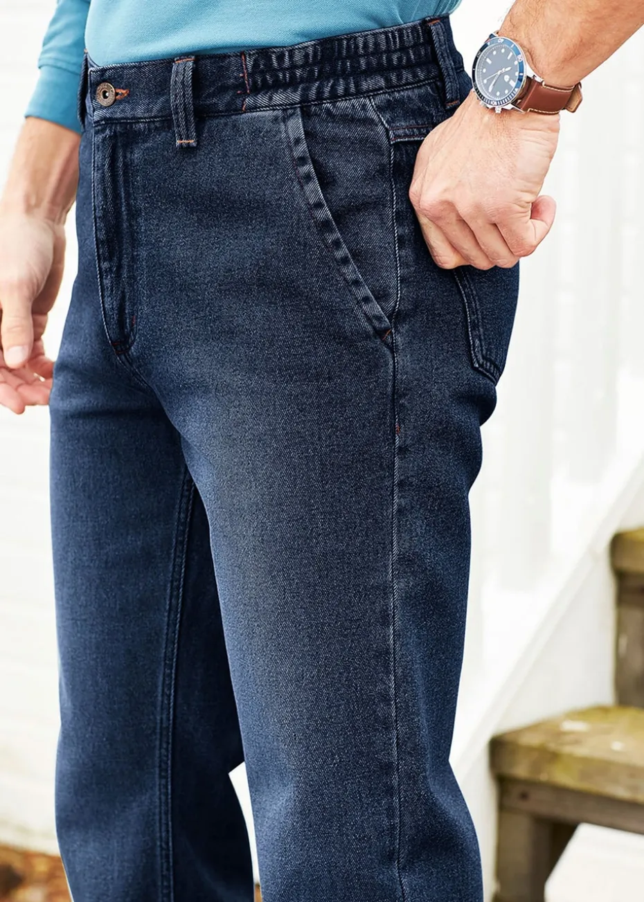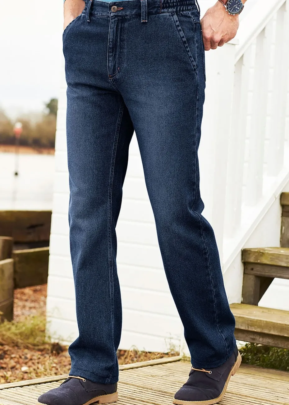 Cotton Traders Indigo Side Elasticated Straight-Fit Jeans