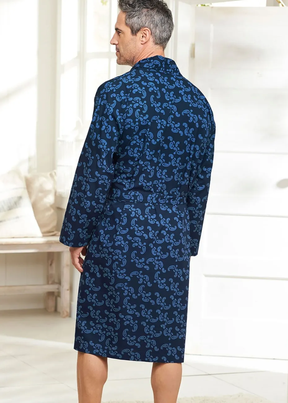 Cotton Traders Navy Woven Dressing Gown