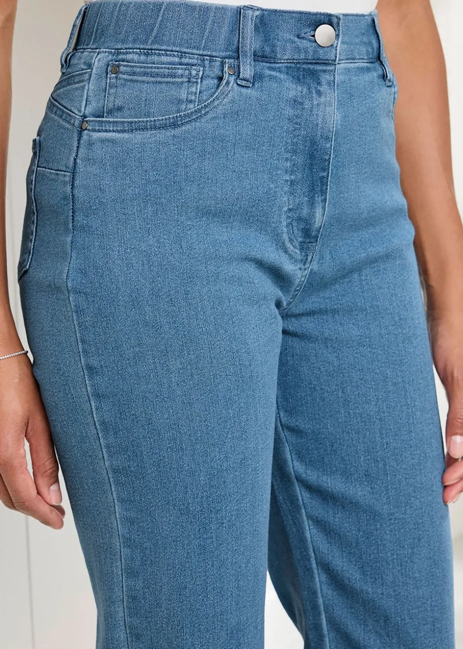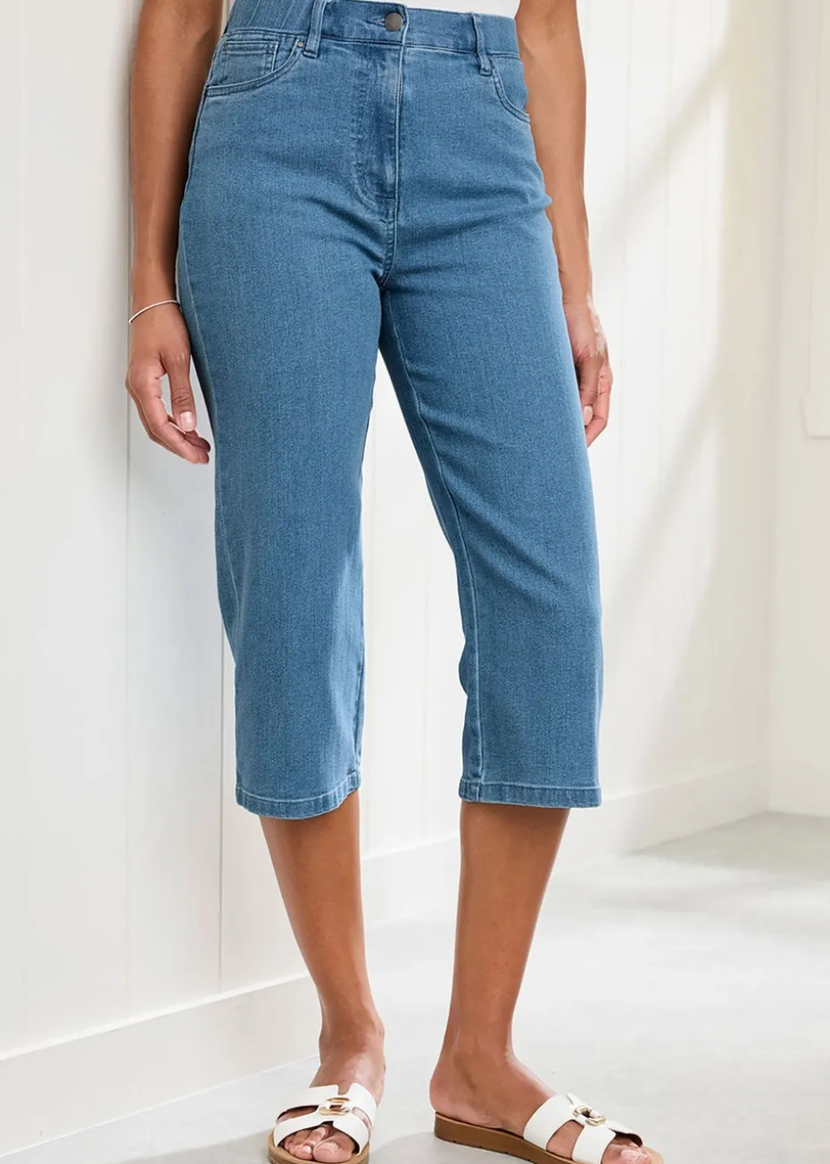 Cotton Traders Washed Blue Stretch Crop Denim Trousers