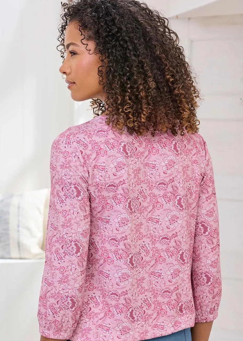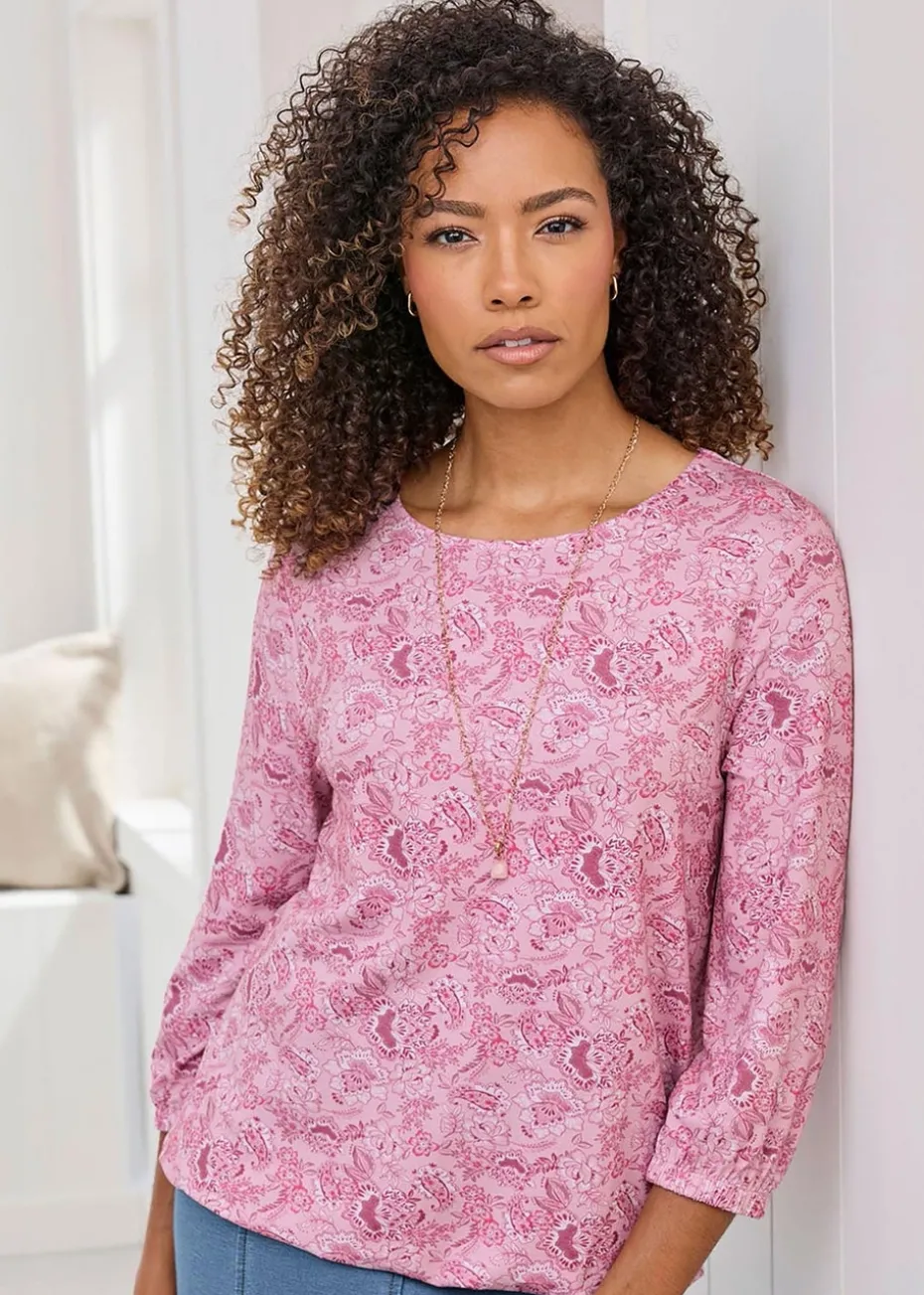 Cotton Traders Washed Pink Print Bubble Hem Top