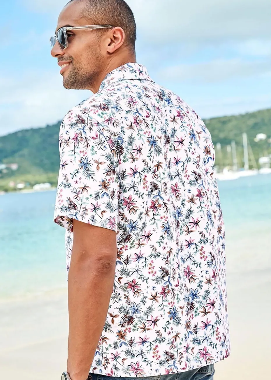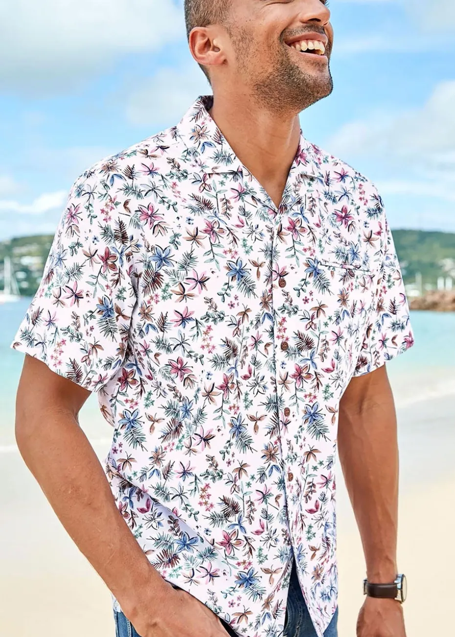 Cotton Traders White Short Sleeve Summer Print Soft Touch Print Shirt