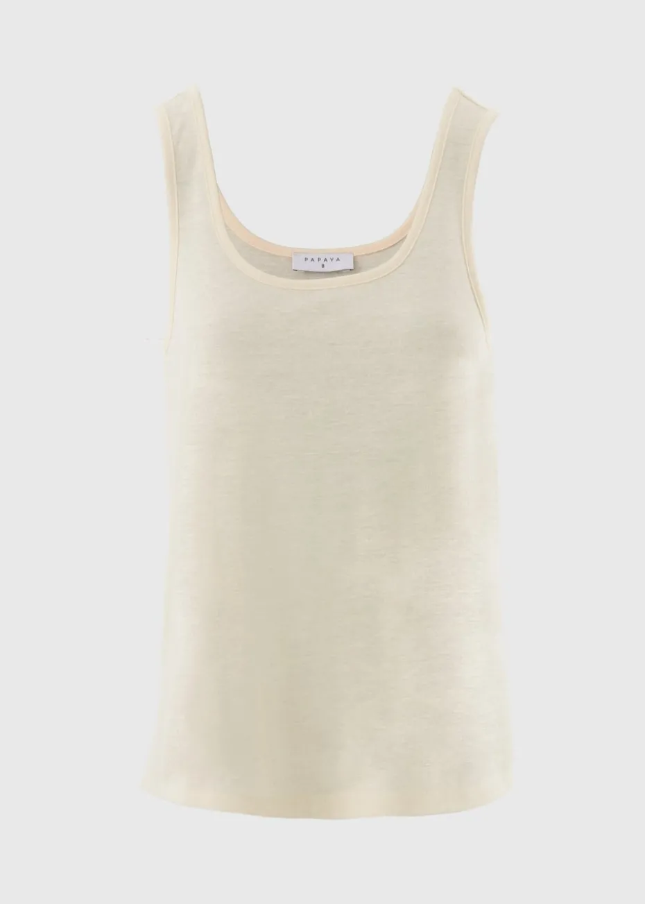 Light, airy, and effortlessly cool. This linen-blend vest top features subtle cream colour in a relaxed fit — perfect for warm days and easy layering.