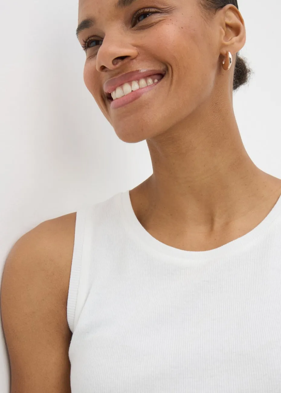 Add comfort to your everyday essentials with the Cream Ribbed Vest. Designed in a flattering ribbed fabric, this soft and stretchy vest offers a close fit that’s perfect for layering or wearing solo on warm days. With its classic scoop neckline and versatile cream hue, it pairs effortlessly with jeans, shorts, or loungewear. Whether you’re dressing up or keeping it casual, this vest is a go-to staple for any wardrobe.