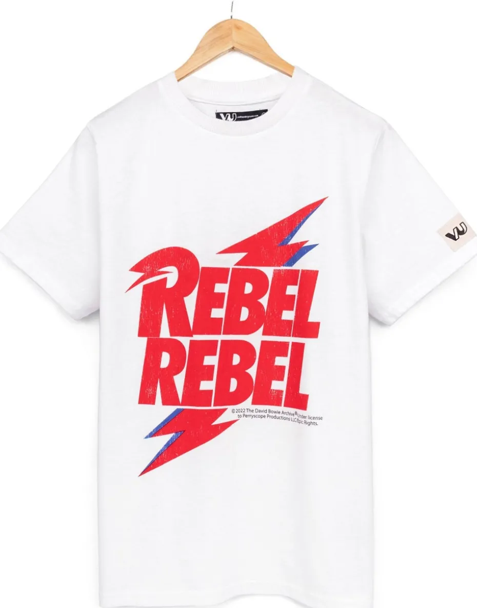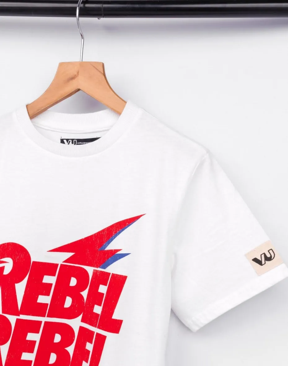Little Bowie fans will be rocking around in this white Rebel Rebel song t-shirt! Ideal for everyday wear, playtime and concerts, this top is a must-have gift for birthdays. The children’s music tee comes in white with short sleeves and a crew neck style that features the band’s popular song Rebel Rebel with their signature lightning bolt logo. The unisex outfit is made from 100% cotton ensuring it has a soft and comfortable fit. Take Care of Me – We really want to ensure you experience the longest life with your product, so please follow any care instructions provided with your product and do not hesitate to contact our customer care team if you have any queries.