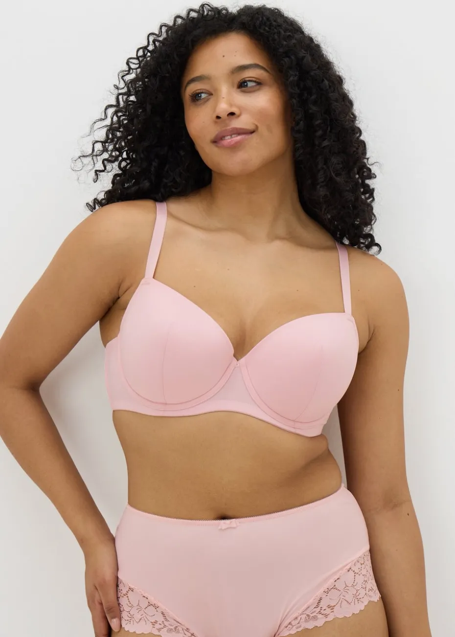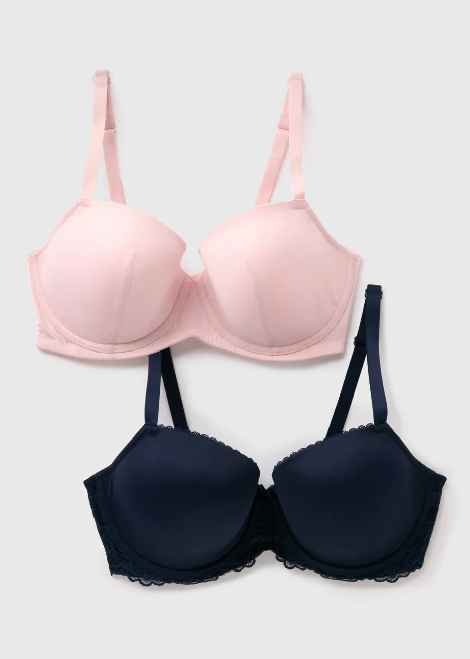Feel supported and stylish with the DD+ 2 Pack Padded Multicolour Bras. Specially designed for fuller busts, this bra combines comfort and elegance with its soft, supportive cups and feminine lace detailing. The pretty pink and navy colour palette adds a delicate touch, while the underwire and adjustable straps ensure a secure, comfortable fit all day long.