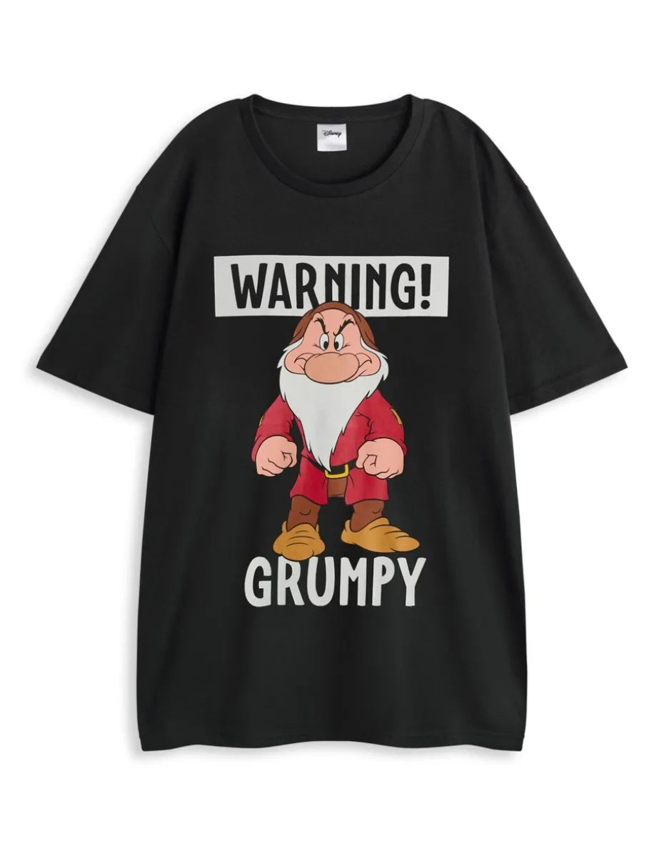 Dive into the enchanting world of Snow White and her lovable companions with the Disney Snow White & The Seven Dwarfs Grumpy Mens Black Graphic Tee! Perfect for the man with a bit of an attitude, this short-sleeve classic crew neck tee showcases Grumpy in all his grouchy glory with a playful “WARNING! GRUMPY” print that’s sure to bring a smile – even to the grumpiest of faces. Whether you’re lounging at home, catching some Z’s, or simply wishing to embrace your inner dwarf, this tee is the ideal addition to your sleepwear collection. The bold black fabric seamlessly combines with the vibrant multicolour graphic, bringing Grumpy’s charmingly cantankerous personality to life while reminding everyone that sometimes, it’s just good to be grumpy! Made with love and a touch of magic from Disney, this shirt captures the spirit of the beloved character from the timeless tale of Snow White. It’s a delightful way to celebrate your fandom while keeping it comfy. Did you know that Grumpy was originally considered for perhaps a more, shall we say, cheerful personality? But thank goodness for the gruff charm he brought to the Seven Dwarfs’ crew! This shirt is designed especially for men who appreciate both style and a humorous nod to one of Disney’s classic characters. So whether you’re off to a movie night, hitting the hay, or just enjoying some downtime, let everyone know that you’re ready to embrace your inner Grumpy with flair. This is not just sleepwear; it’s a badge of honour for all who recognise that sometimes, a little grumpiness goes a long way in adding character to your day. Add this tee to your wardrobe and show the world that being a little grouchy is perfectly okay, especially when you wear it with Disney magic.