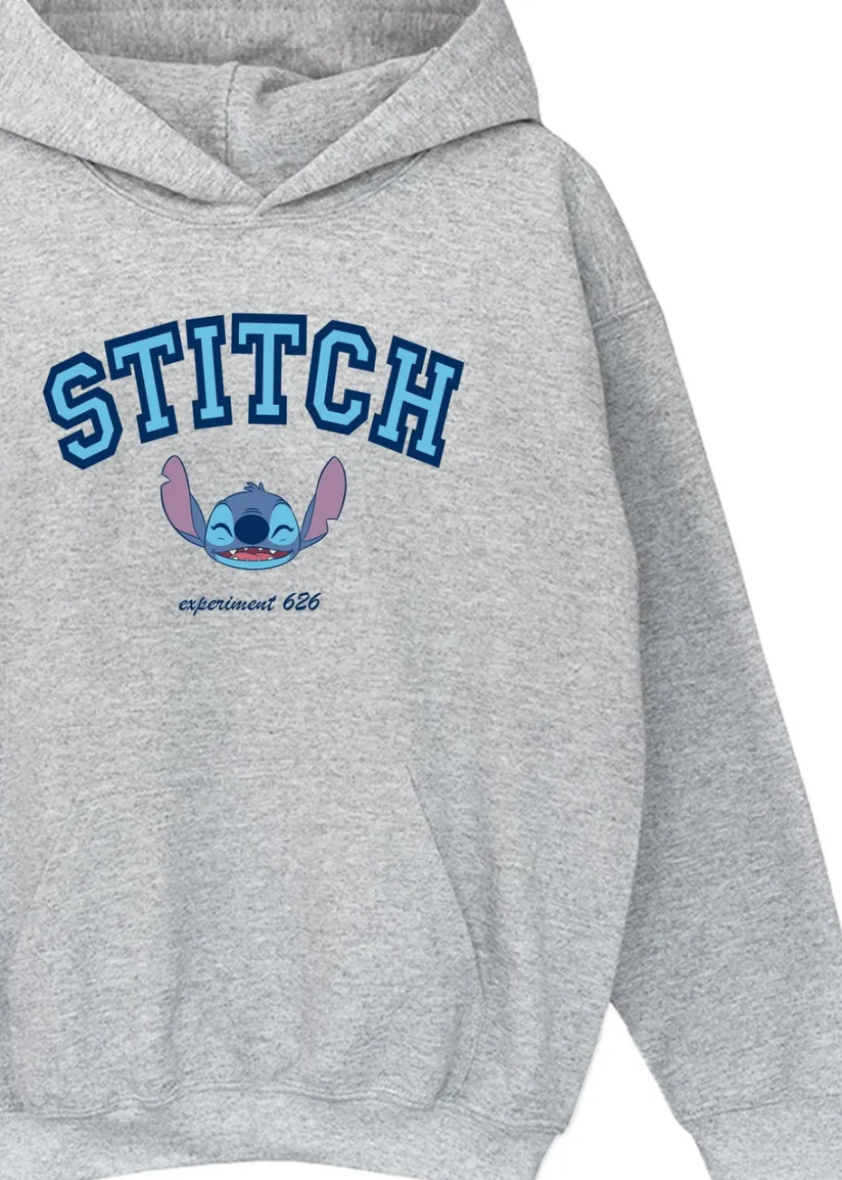 Disney Stitch Collegial Girls Heather Grey Printed Hoodie (3-13 yrs)