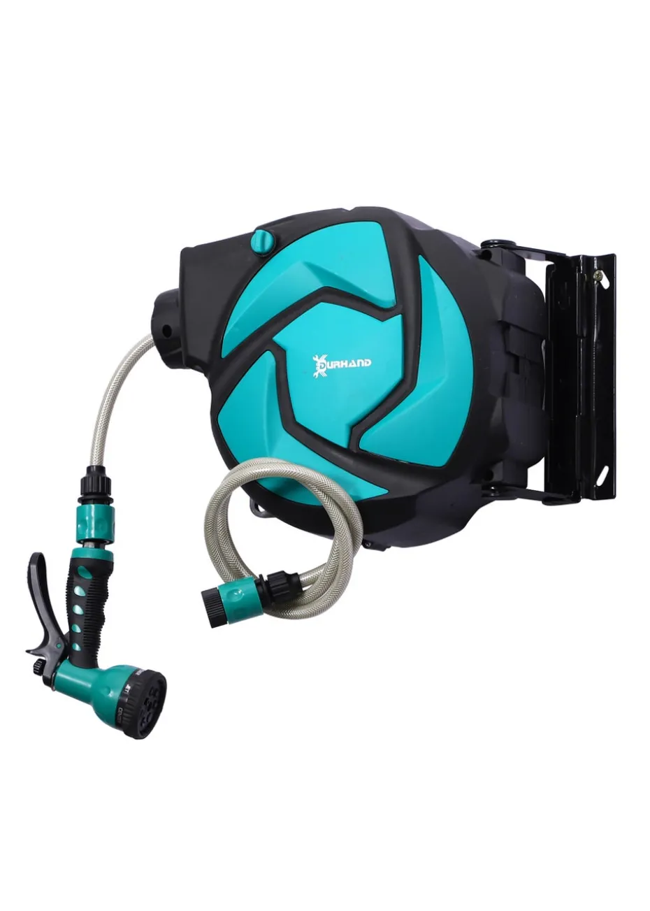 DURHAND 10m Garden Auto Hose Reel Wall Mounted Retractable 7 Patterns Spray Nozzle