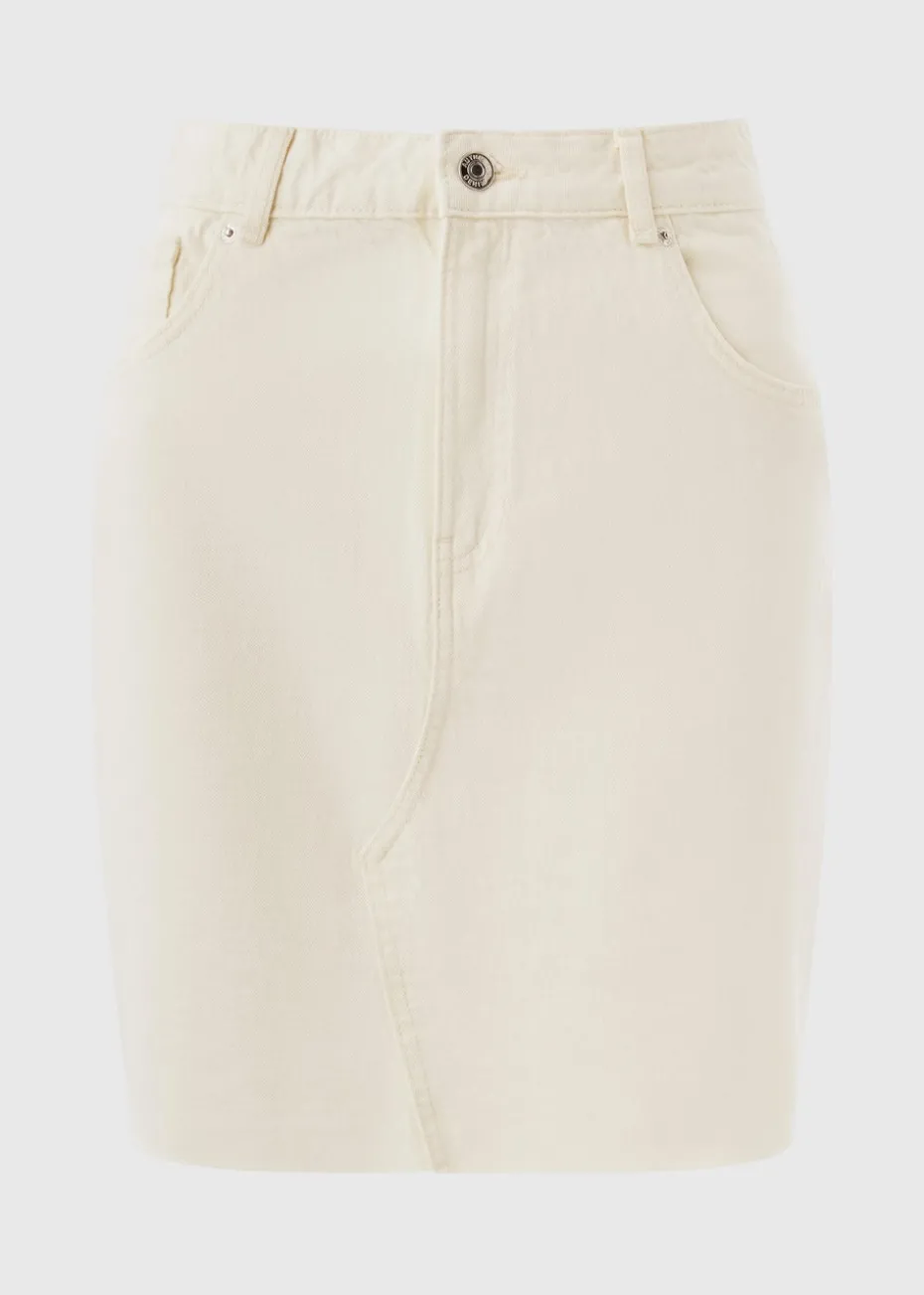 Our denim mini skirt in ecru is a wardrobe staple that will take you from day to night. With its classic five-pocket detailing, belt loops, and zip fly, this skirt is both stylish and practical. The ecru colour is versatile and easy to pair with any top, making it a great choice for any occasion. Whether you’re dressing up for a night out or keeping it casual for a day of shopping, this skirt is sure to become your go-to piece.
