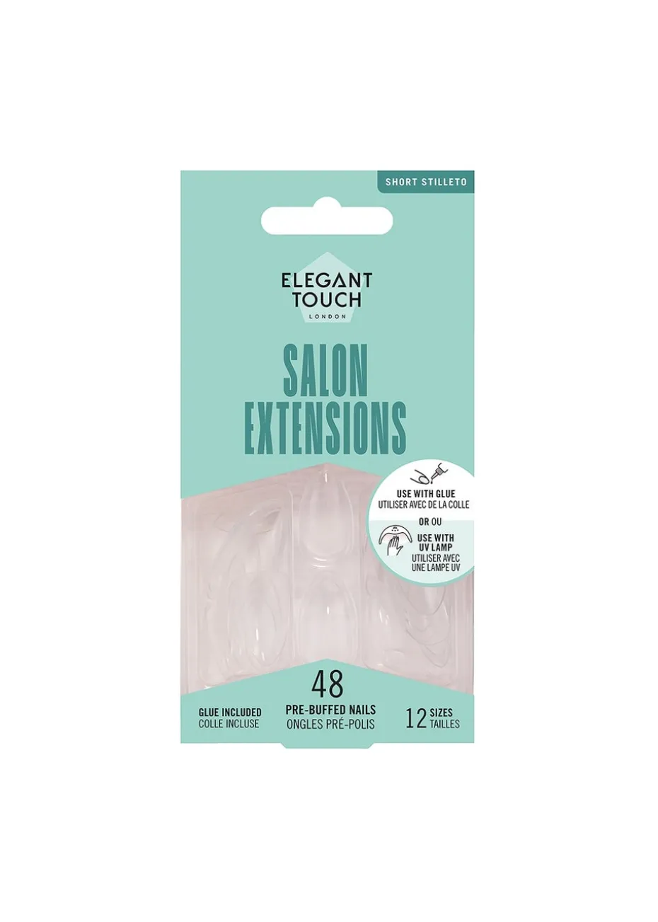 Achieve salon-quality nails at home with Elegant Touch Salon Extensions S. Stiletto. These sleek, stiletto-shaped extensions offer a chic and modern look. Perfect for a night out or special occasions.