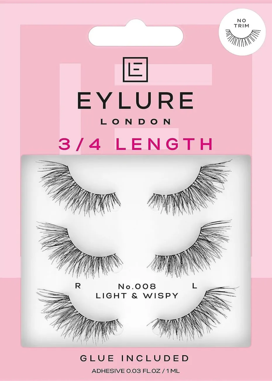 Eyelure 3/4 Length 008 provides partial lashes that add subtle volume and length. These lashes enhance the outer corners of your eyes for a lifted and elongated appearance. Perfect for a natural, yet noticeable, look.