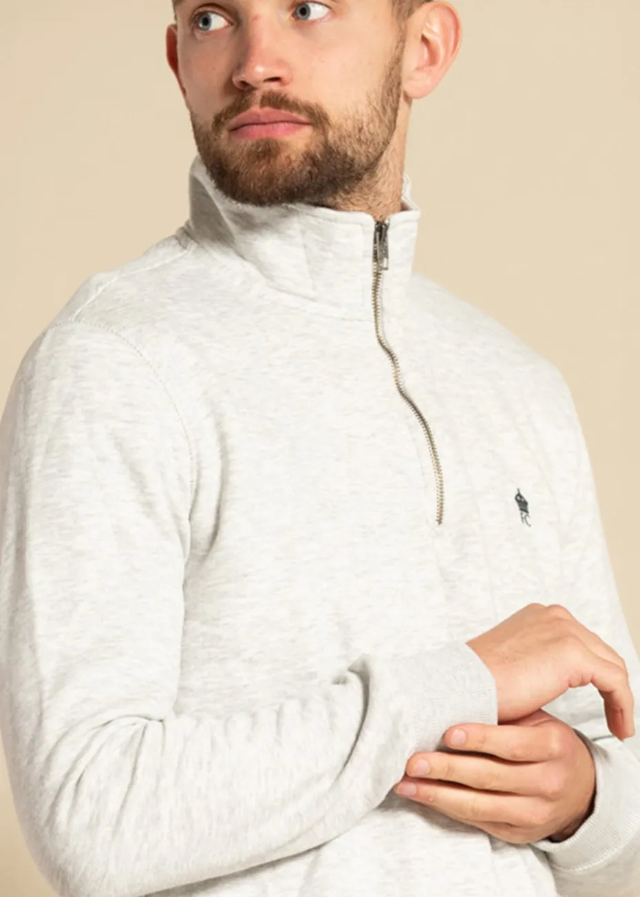 French Connection Light Grey Cotton Blend Half-Zip Jumper
