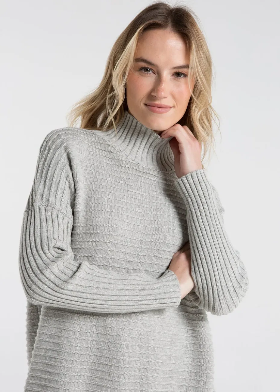 French Connection Light Grey Cotton Ribbed Knit High Neck Jumper