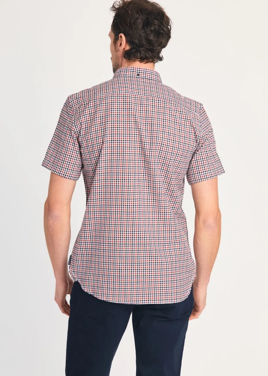French Connection Red Cotton Short Sleeve Gingham Chest Pocket Shirt