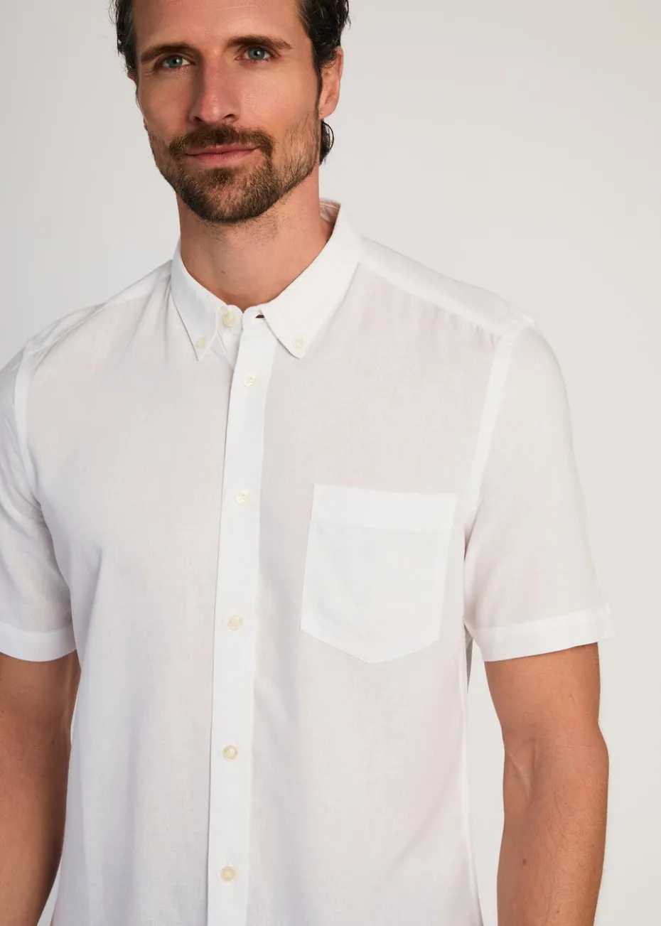 French Connection White Linen Blend Short Sleeve Chest Pocket Shirt