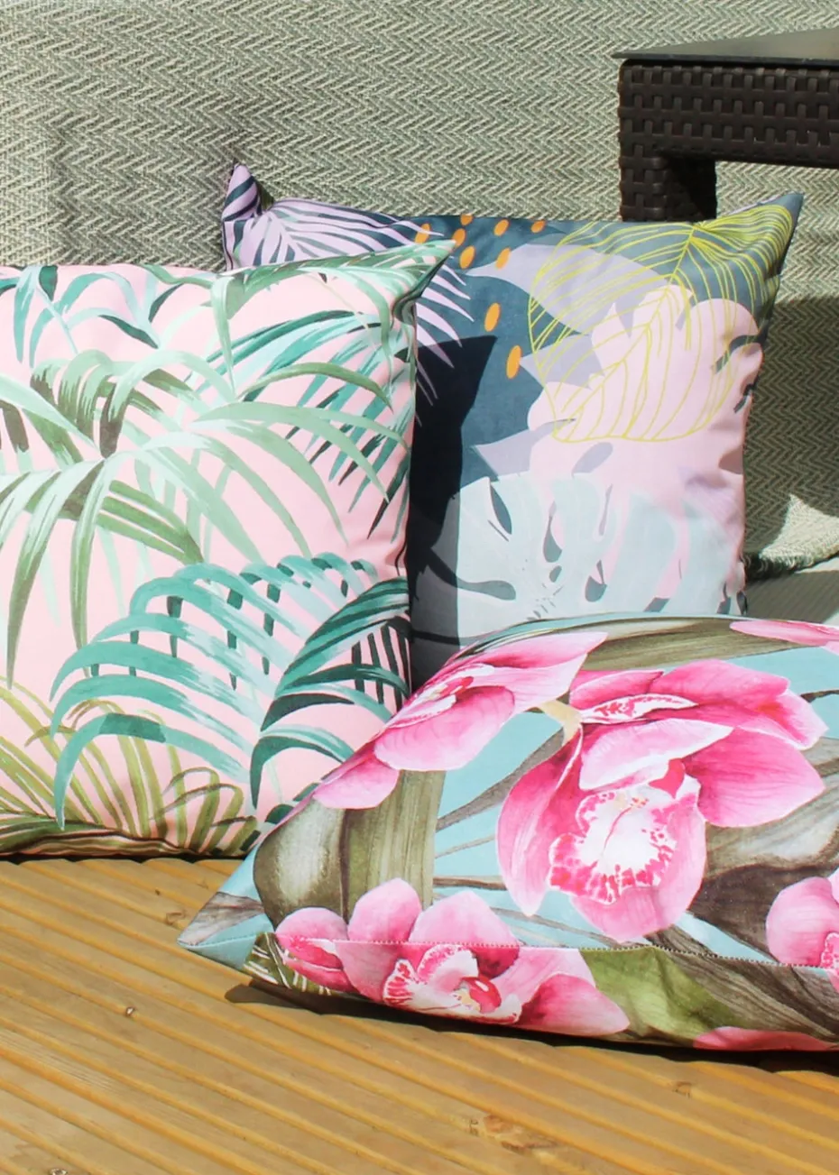 Featuring a bold and abstract design of palm leaves. There is a fully reversible design in pastel pinks and bright green’s will instantly freshen up your outdoor space.