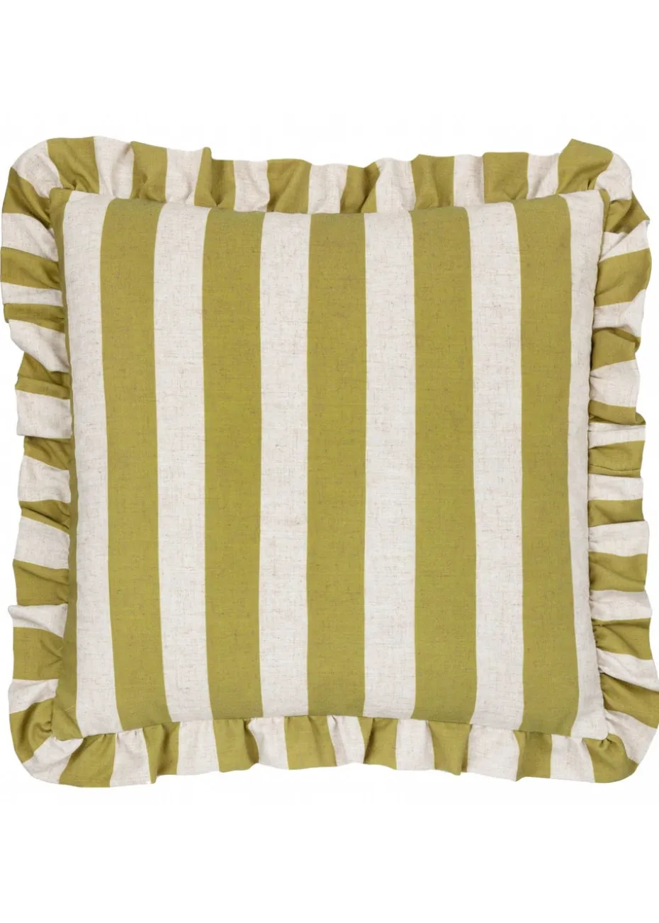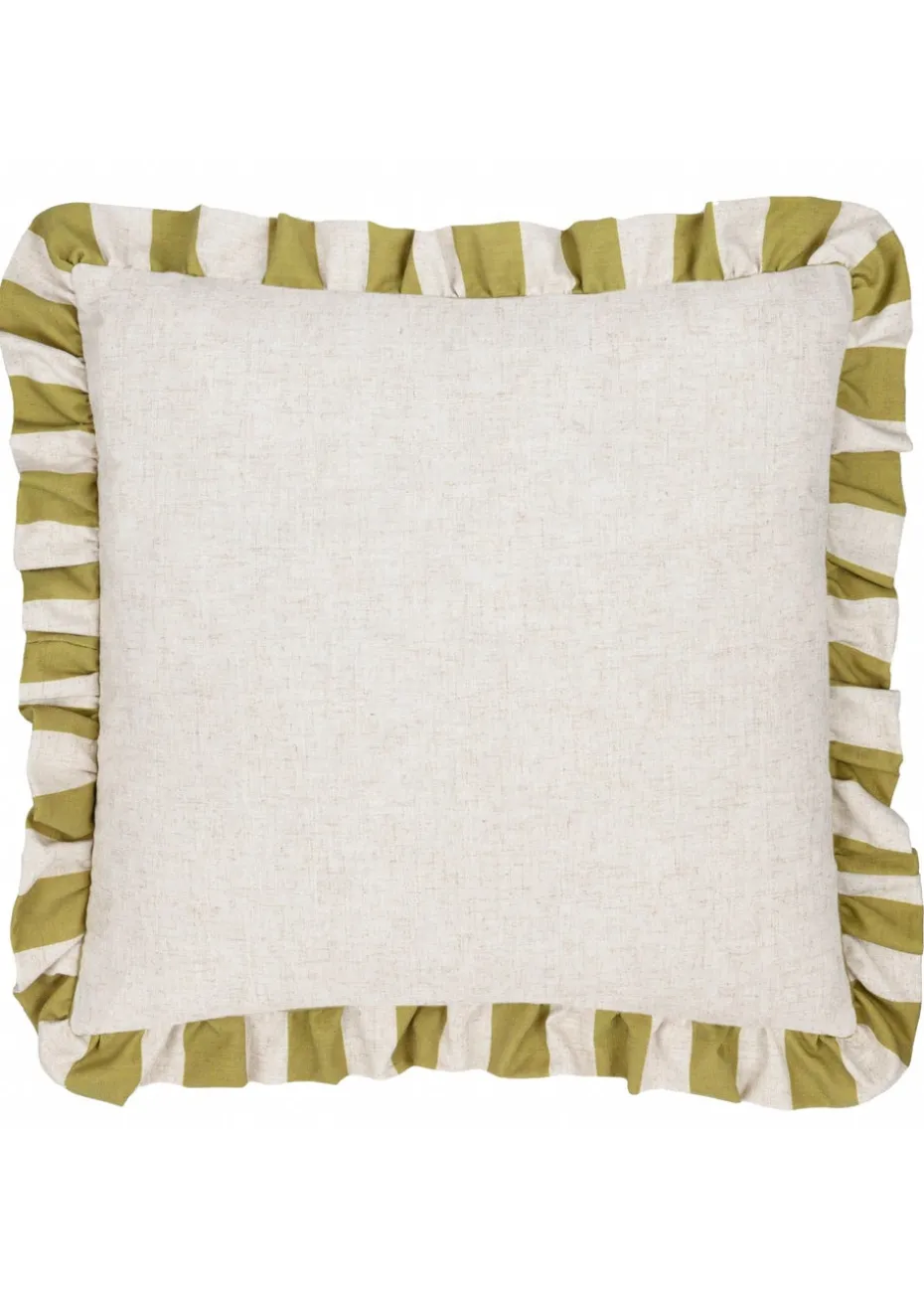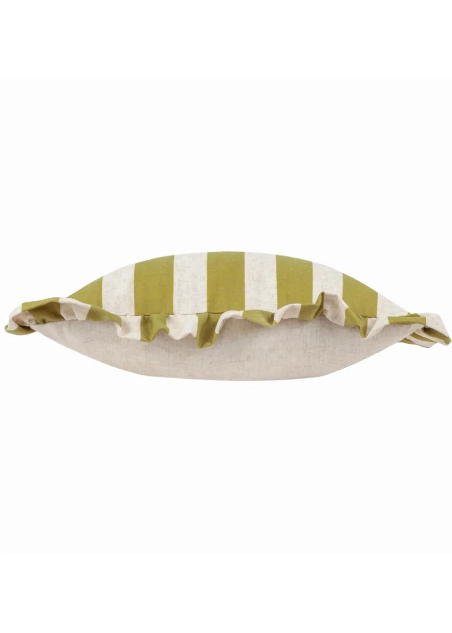 Furn Linen Stripe Printed Ruffle Olive Cushion (50 x 50 x 8 cm)