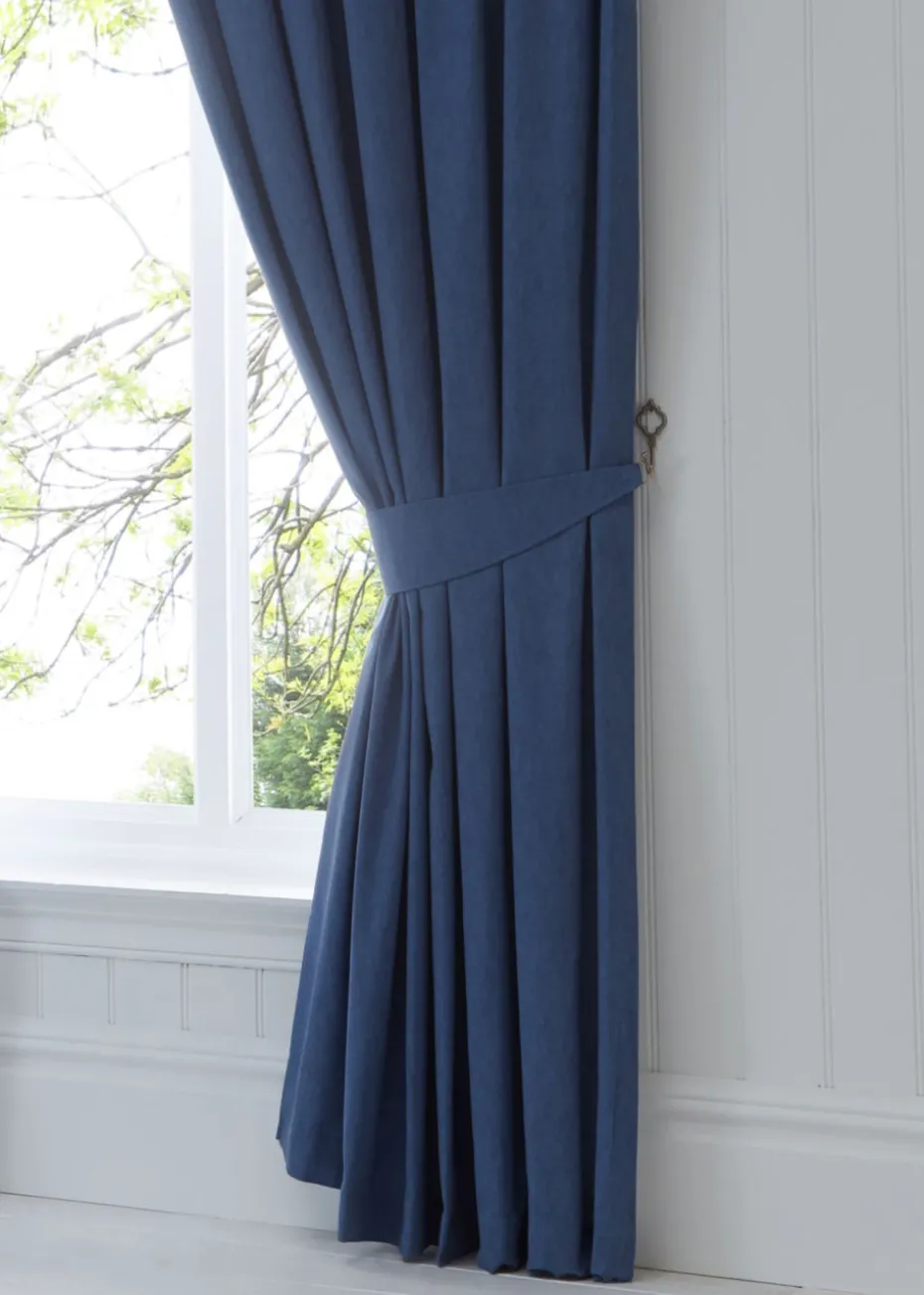 Fusion Dijon Blackout Navy Pencil Pleat Curtains