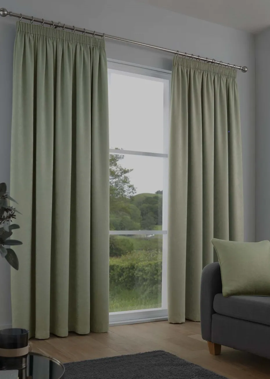 Fusion Galaxy Dimout Green Pencil Pleat Curtains