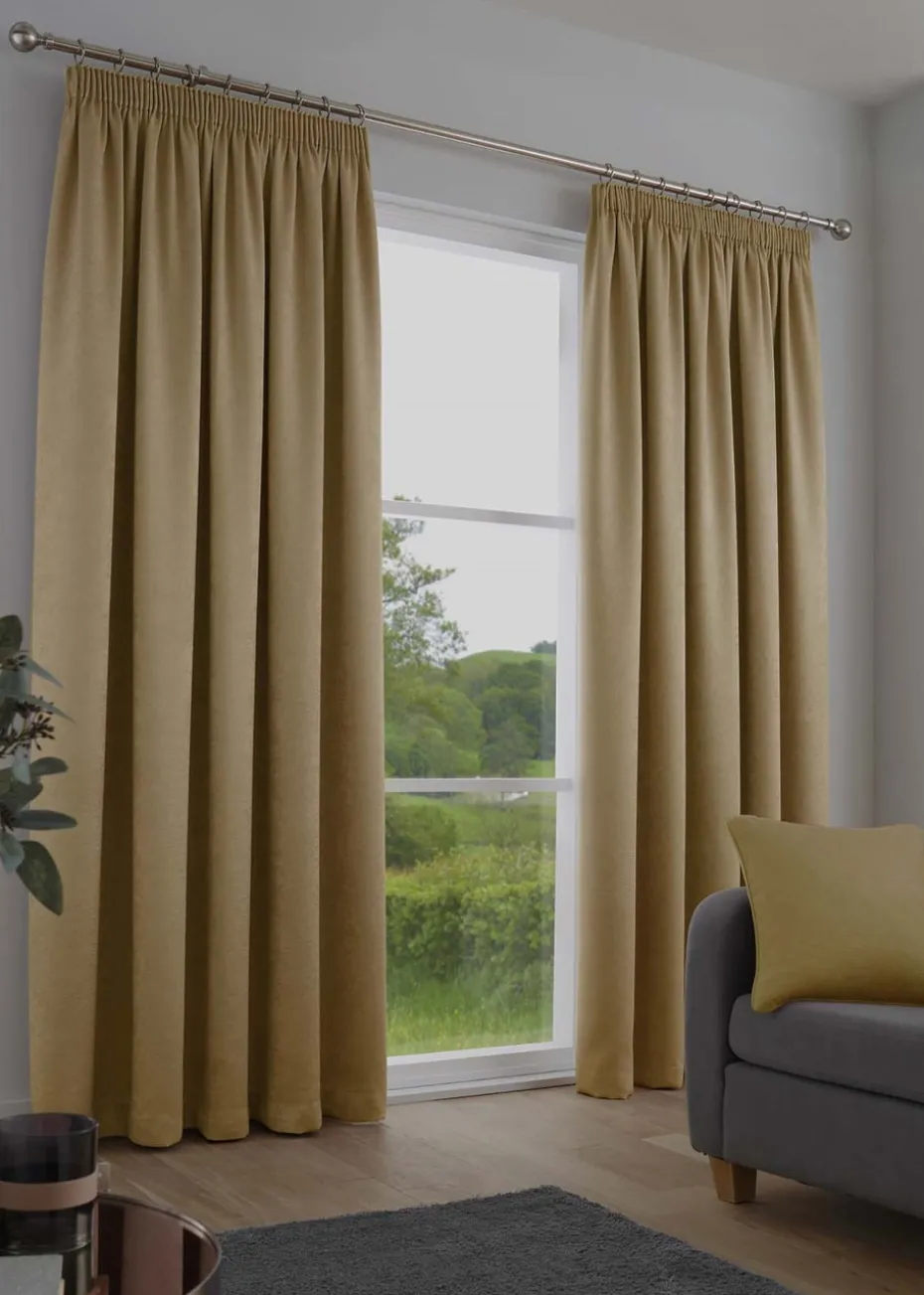Fusion Galaxy Dimout Yellow Pencil Pleat Curtains