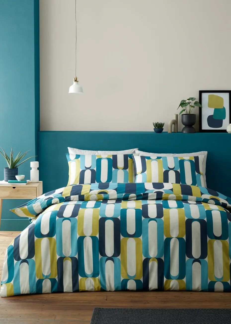 The Fusion Orea Duvet Cover Set is a retro-inspired geometric dream come true for your bedroom! Immerse yourself in a world of chic design with its vibrant print on a deep navy base. And the fun doesn’t stop there – flip it over to reveal the same captivating pattern on a crisp white base. Crafted from soft and easy-care fabric, this set is as delightful as it is practical. Get ready to elevate your bedroom decor with this affordable, fashionable, and easy-to-care-for duvet cover set – because style and comfort should never be compromised!