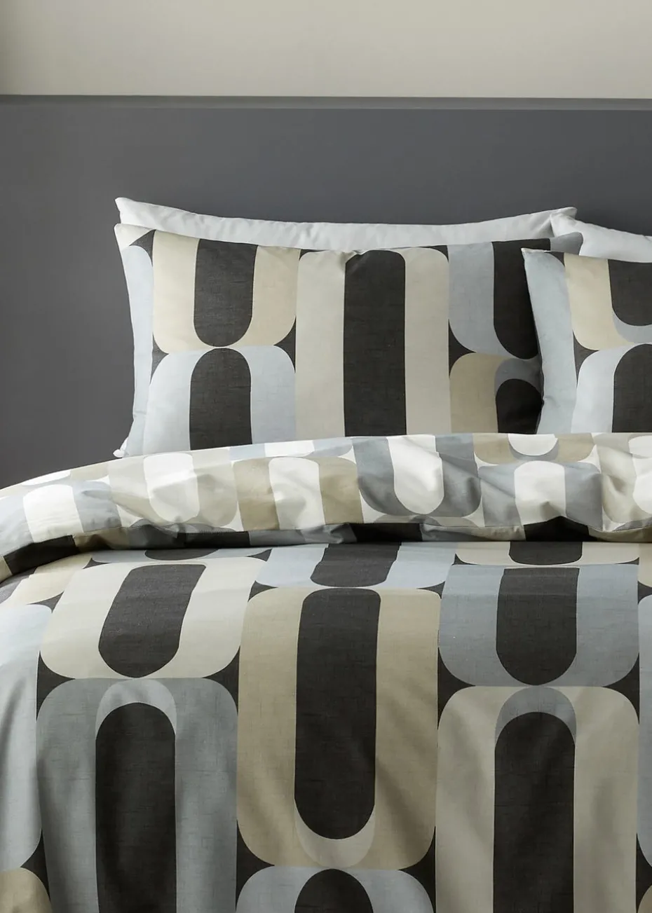 The fabulous Fusion Orea Duvet Cover Set is a retro-inspired geometric extravaganza for your boudoir! Immerse yourself in a world of chic design with its vibrant print on a deep charcoal base. But hold onto your pillow, for the thrill continues when you flip it over to uncover the same captivating pattern on a crisp white canvas. Crafted from soft-as-a-cloud and easy-to-care-for fabric, this set is as delightful as it is practical. Get set to take your bedroom decor to the next level with this affordable, fashion-forward, and easy-to-care-for duvet cover set because compromising style and comfort is simply not in our vocabulary!