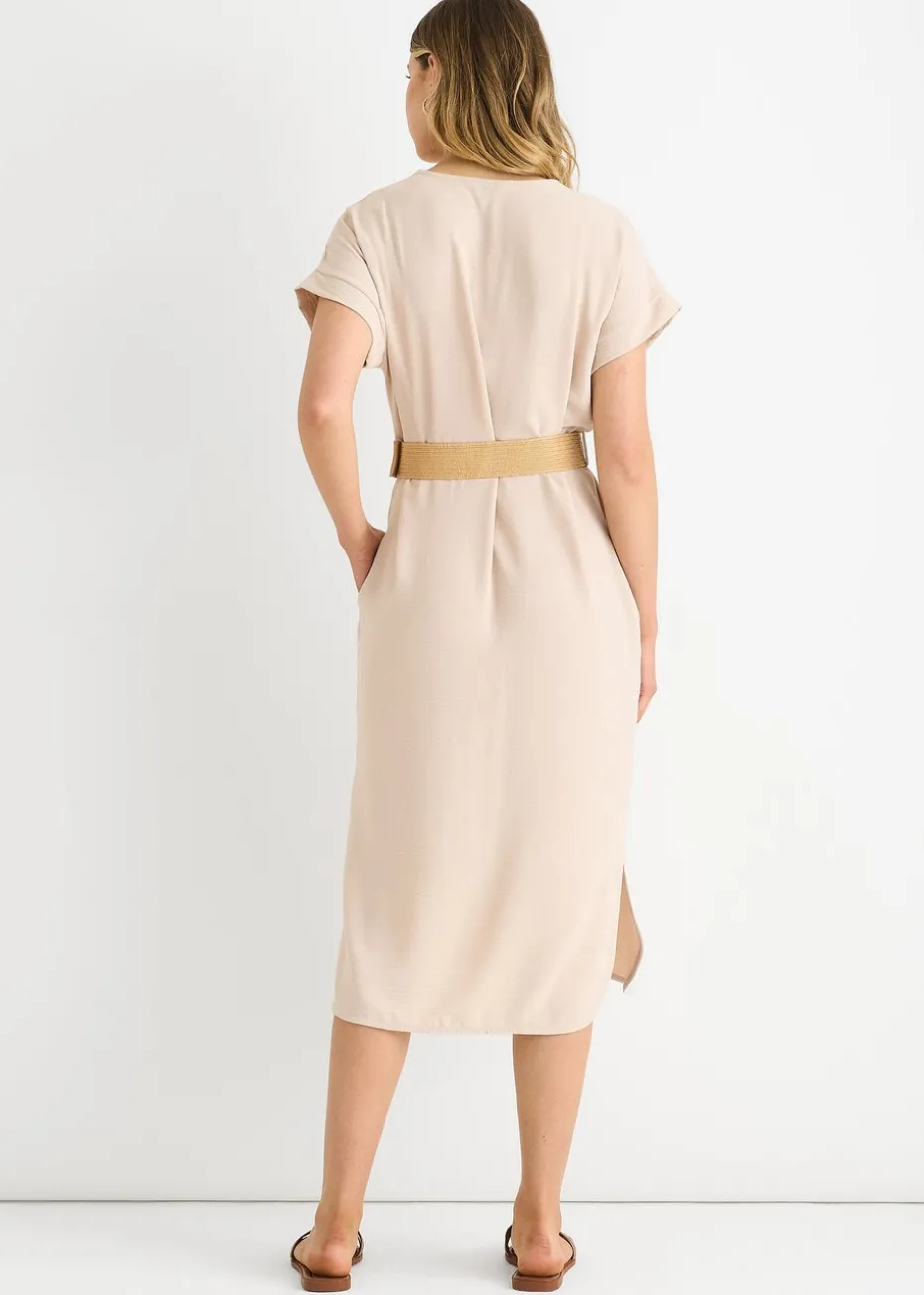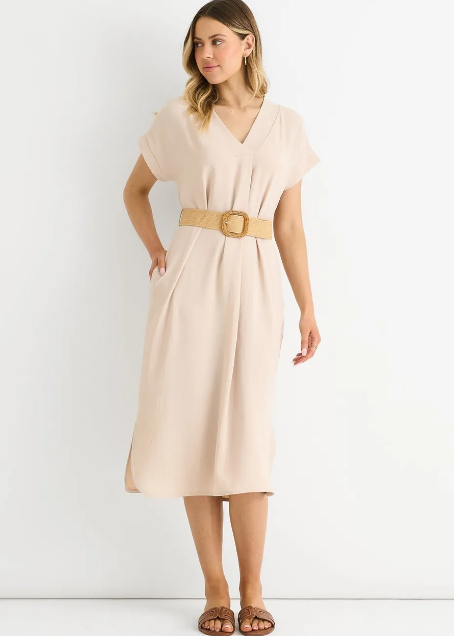 Gini London Beige Air Flow Belted Oversized Dress