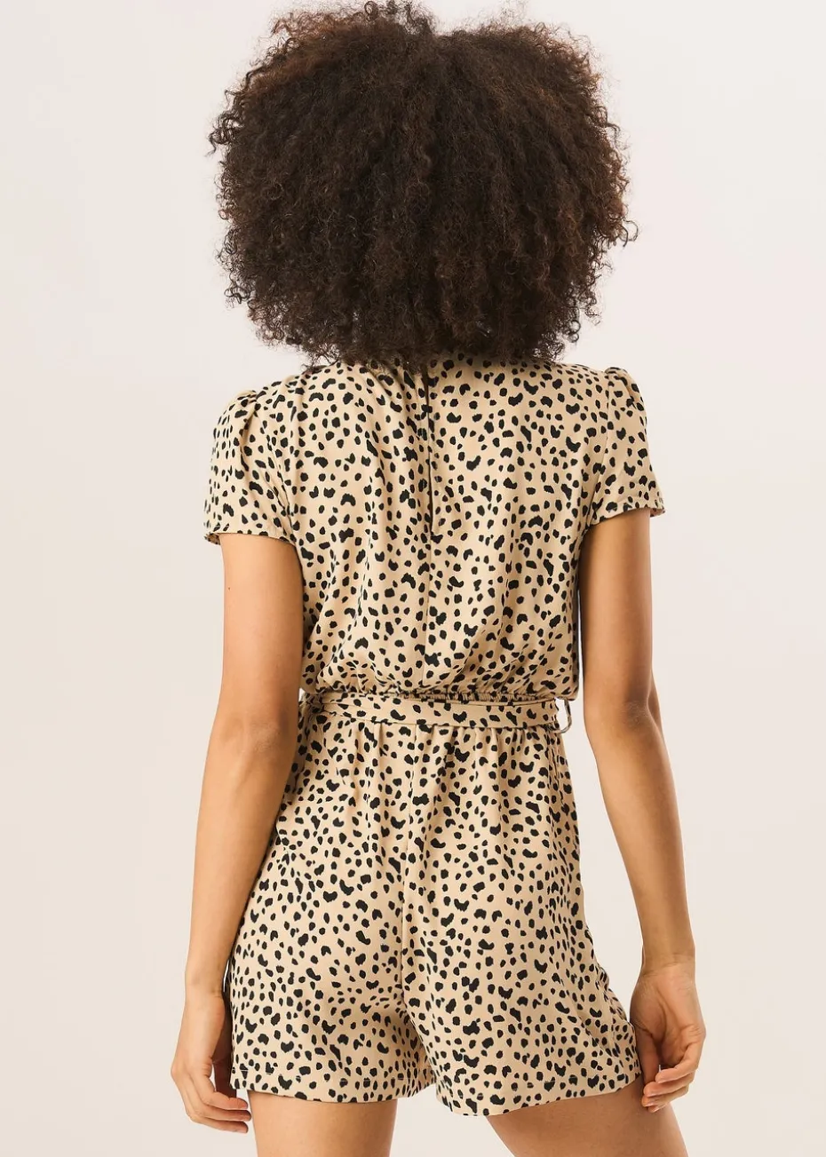 Gini London Beige Animal Print Belted Wrap Playsuit