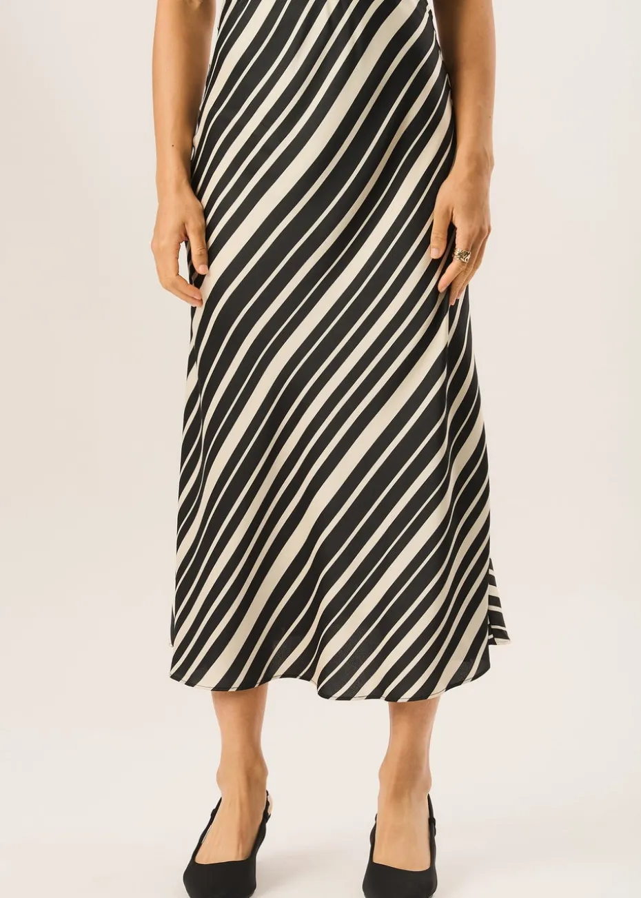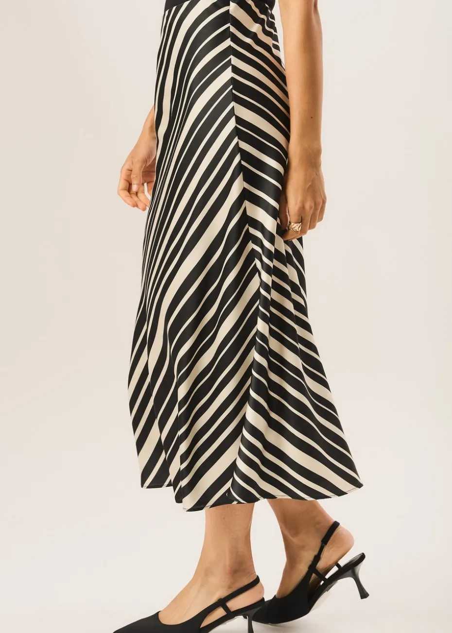 Add a touch of sophistication to your wardrobe with our Mono Stripe Bias Midi Skirt. This midi skirt is designed with a bias cut and features a trendy monochromatic stripe pattern which is perfect for elevating your fashion game. Made from high-quality fabric, it offers both style and comfort.