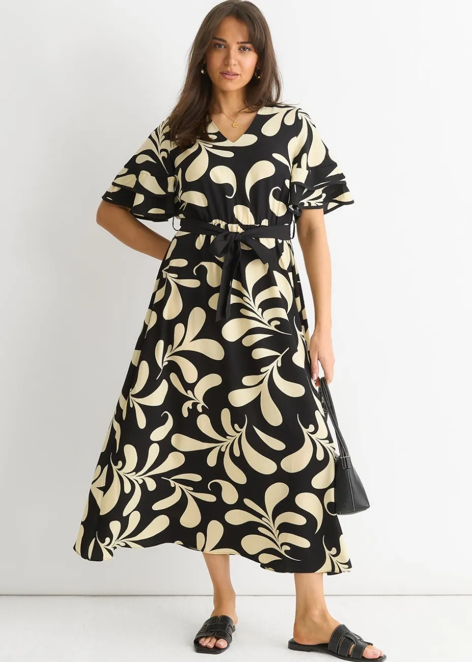 Be the first to review “Gini London Black Floral V Neck Elasticated Waist Midi Dress” Cancel reply