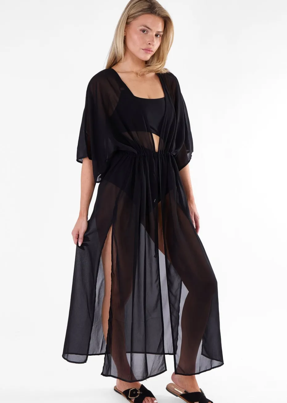 Gini London Black Flowy Open Front Beach Cover Kimono