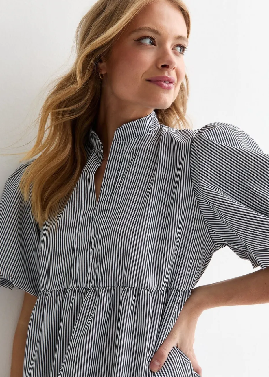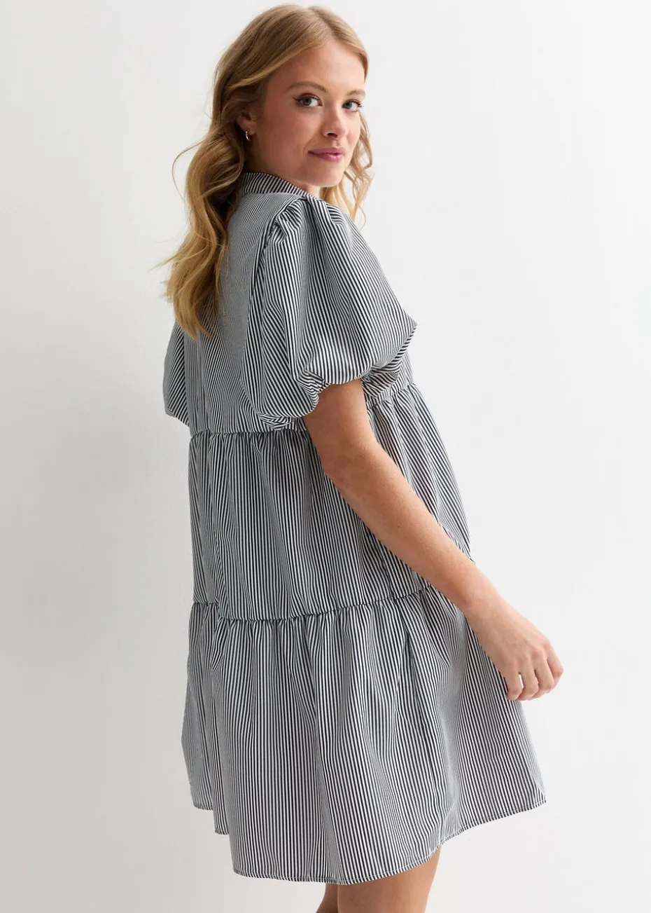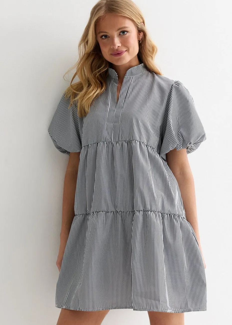 Gini London Black Puff Sleeve Stripe Tiered Dress
