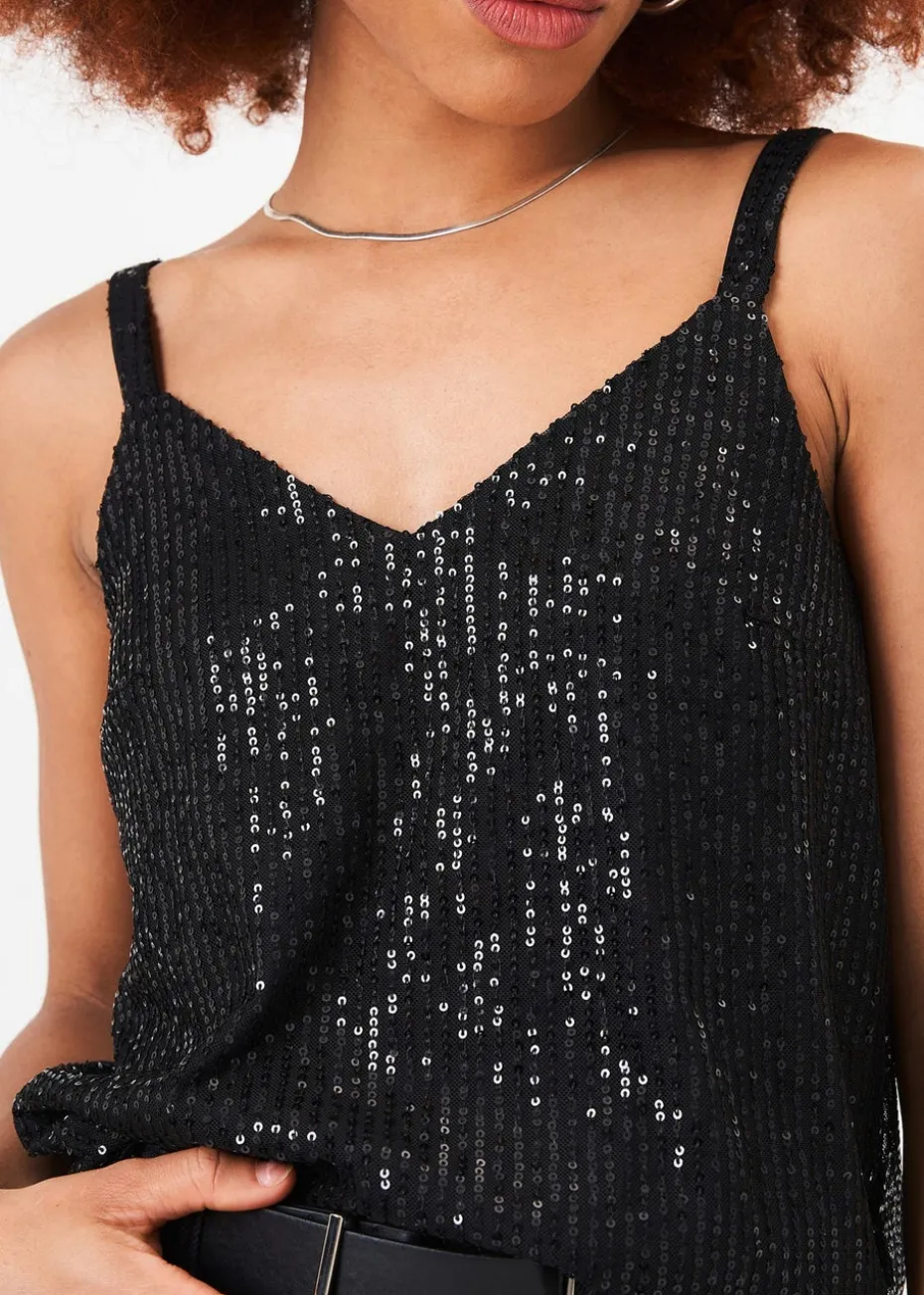 Gini London Black V-Neck Sequin Cami Top