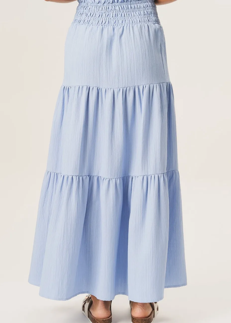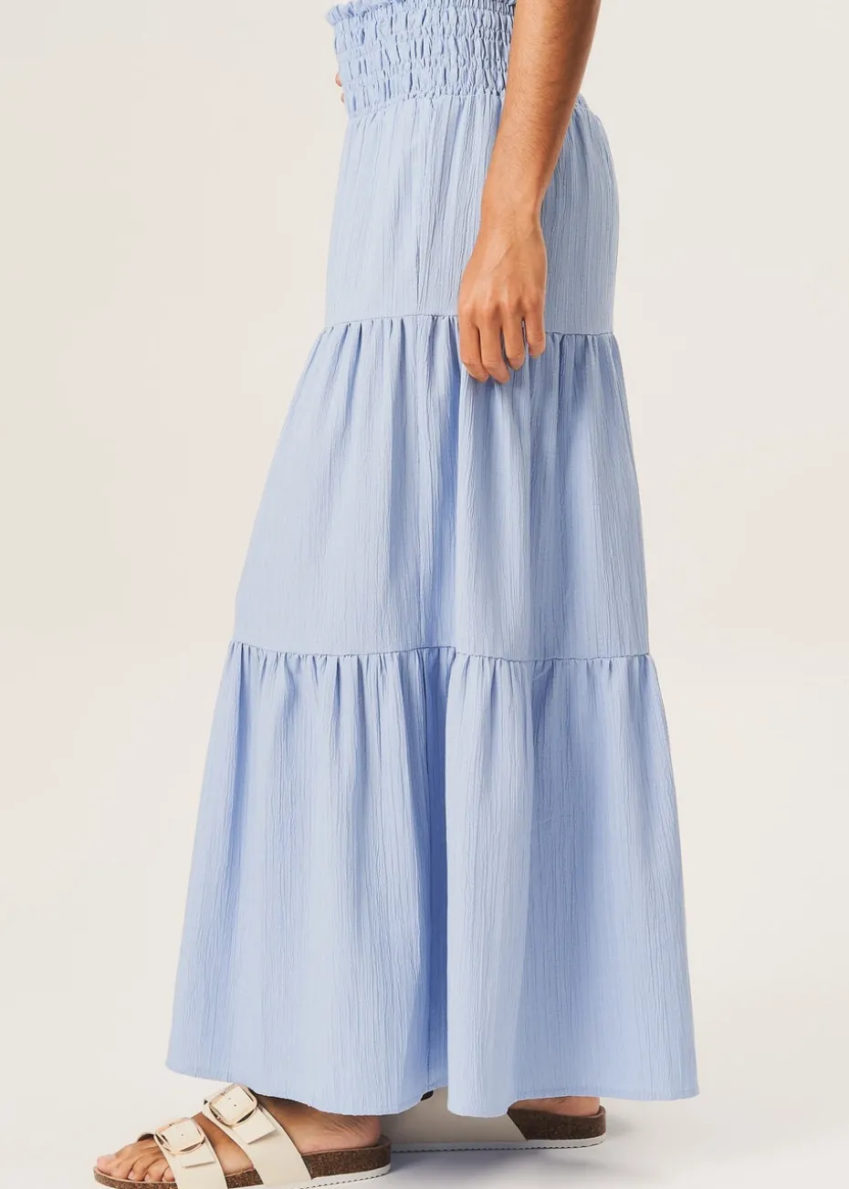 Gini London Blue Smocked Tiered Maxi Skirt