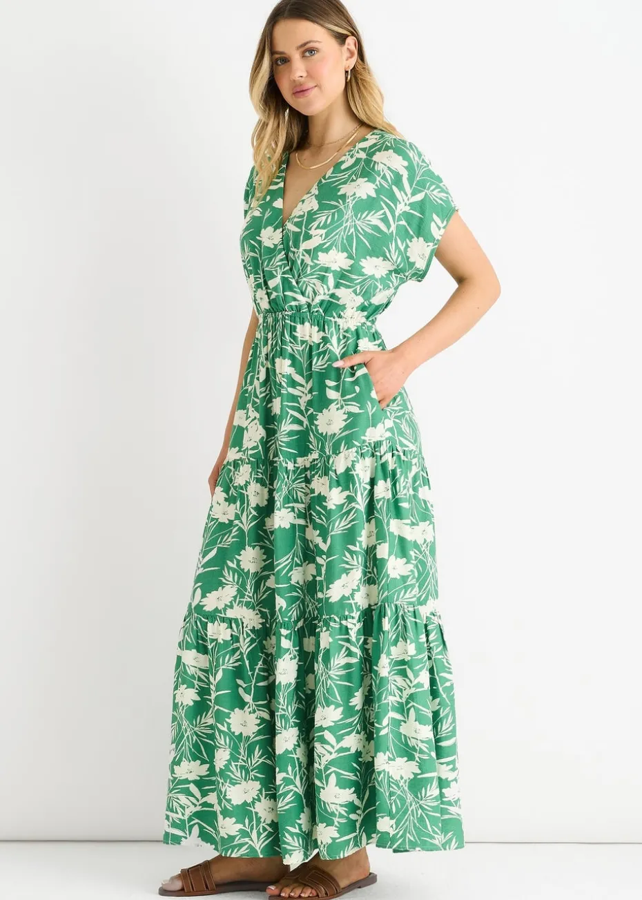 Gini London Green Floral Elastic Waist Maxi Dress
