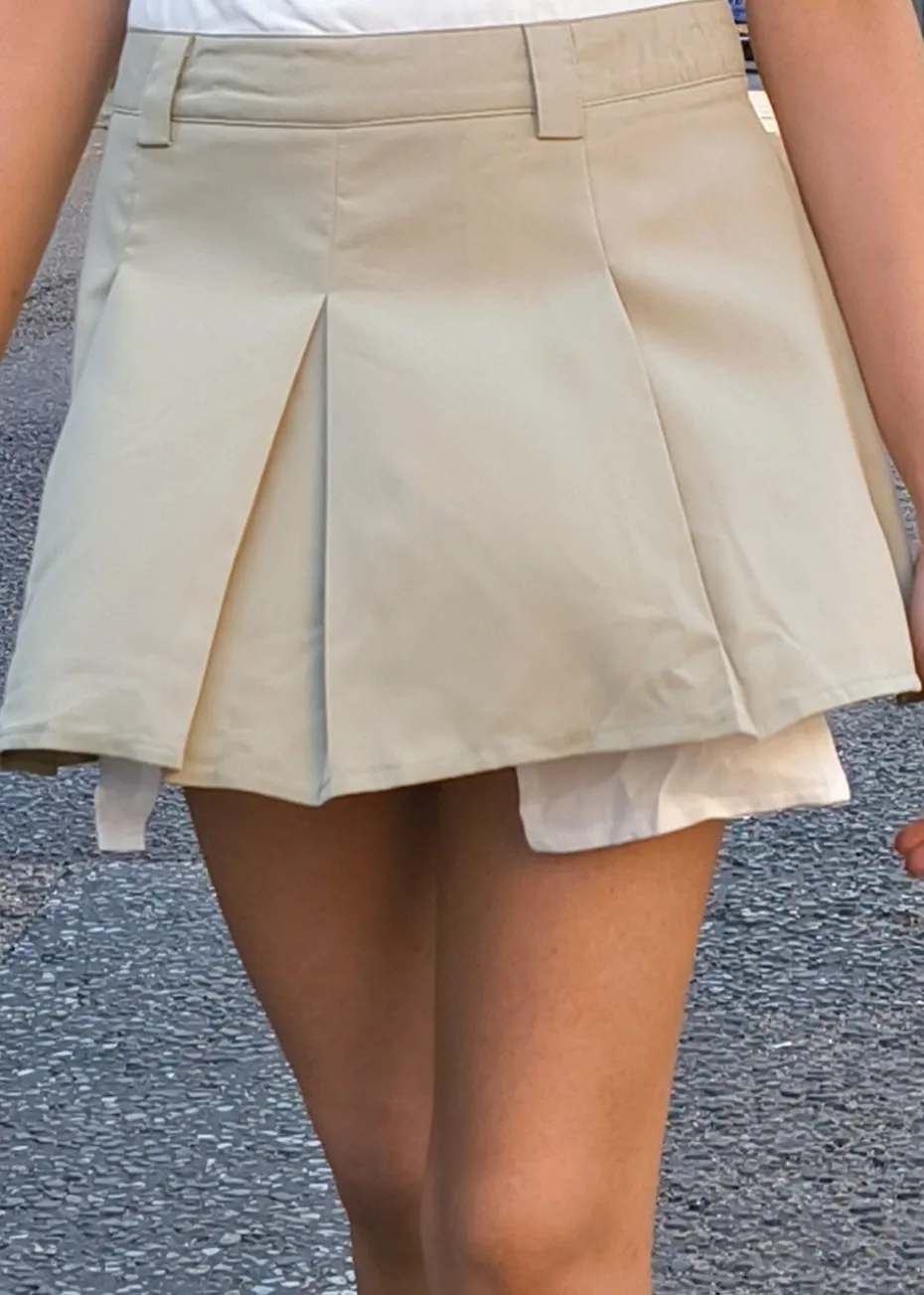 Gini London Sage Green Tall Woven Pocket Detail Pleated Skort