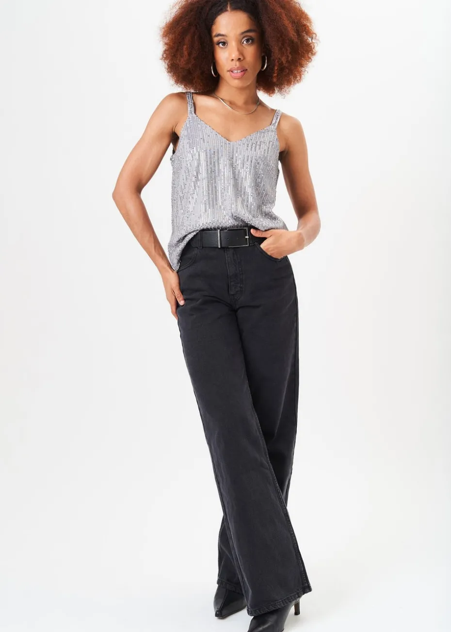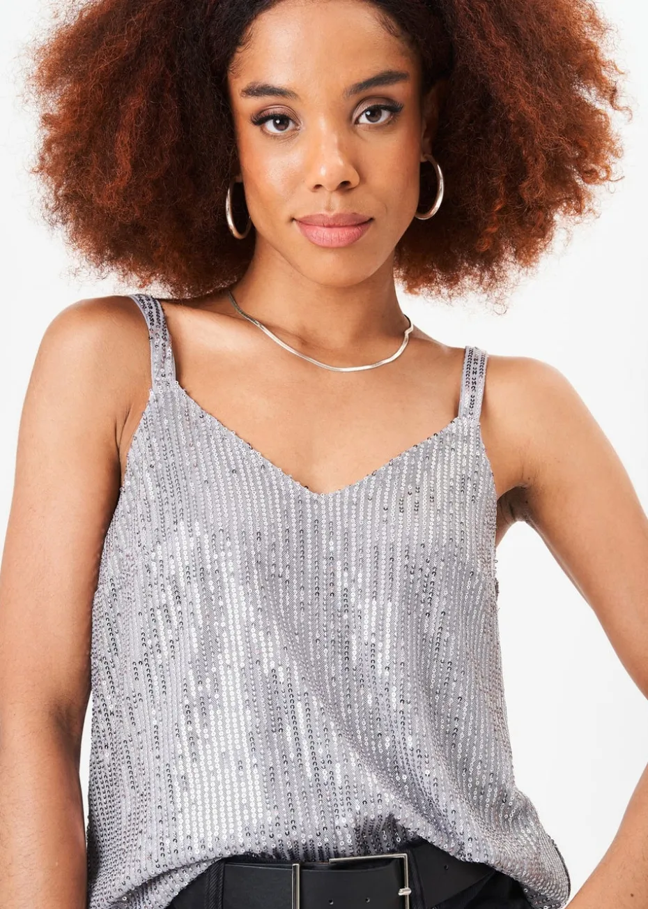 Gini London Silver Sequin V Neck Cami Top