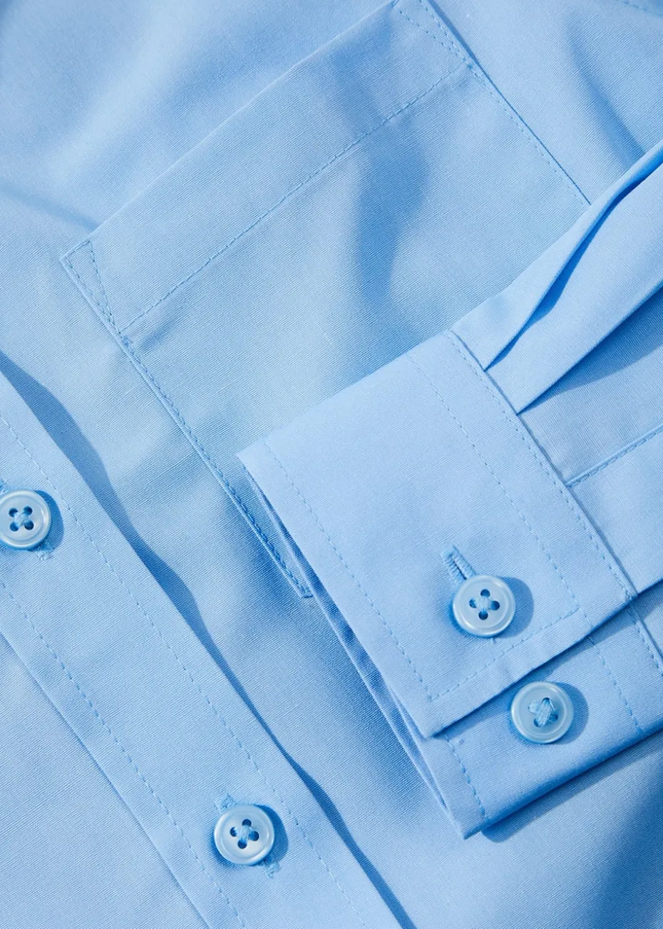 Comfortable, durable and most importantly easy-iron, these long-sleeved blouses will complete your girl’s back-to-school wardrobe. In blue, the regular fit shirts have a classic collar and a riptape front fastening on sizes 4-8 years while older sizes fasten with buttons.