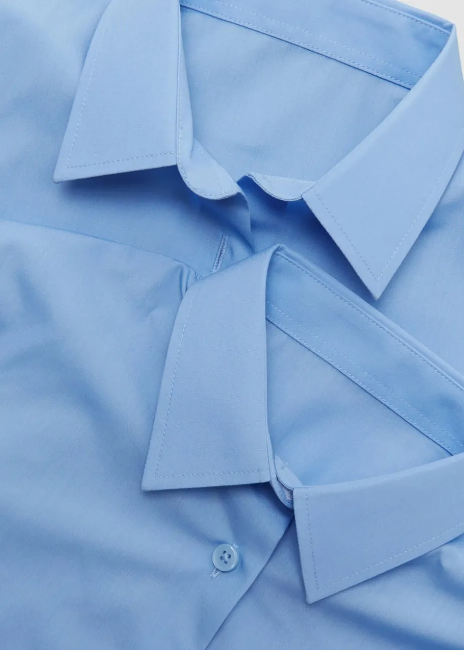 Comfortable, durable and most importantly easy-iron, these short-sleeved blouses will complete your girl’s back-to-school wardrobe. In blue, they come in a regular fit with a classic collar and a riptape front fastening on sizes 4-8 years, while the older sizes fasten with buttons.